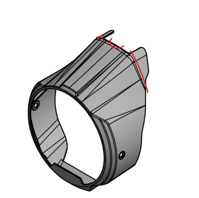 Bei der Maske musst ich oben nachbearbeiten, die zwei Laschen weg und eine Kerbe reinsägen (Siehe rote Markierung auf Zeichnung)