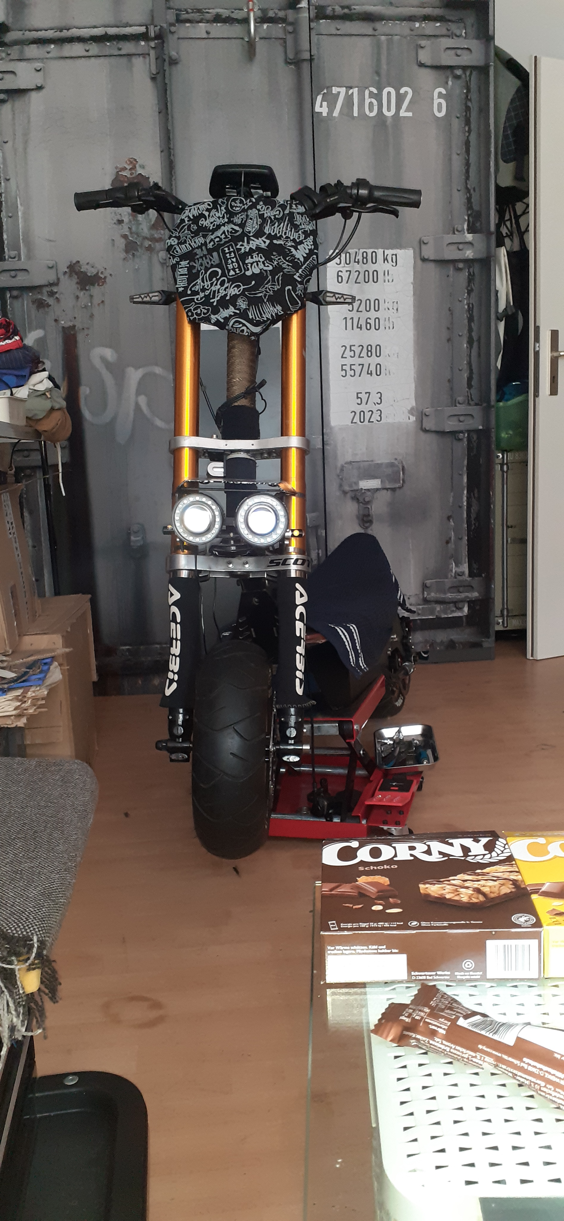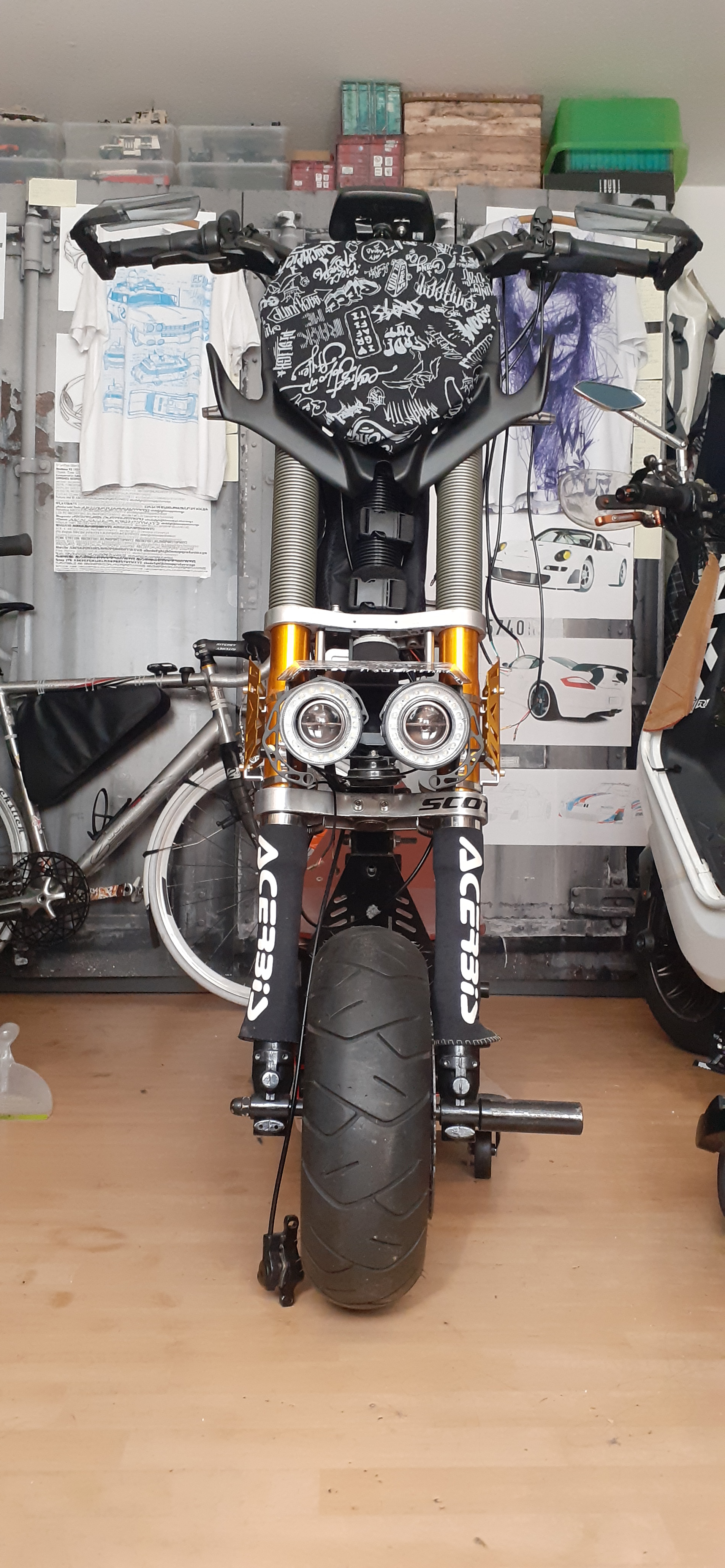 Wenn ich die Zeit finde, geht's bald in vielerlei Hinsicht weiter voran. z.B. Lackteile, Bremsen, Spiegel. Parallel wird das Scooterprojekt fortgeführt und bald ein Zwischenstandsüberblick gepostet. Die Reparatur hat sich auch zu einem mittleren Umbau mit Sinn für Details entwickelt.