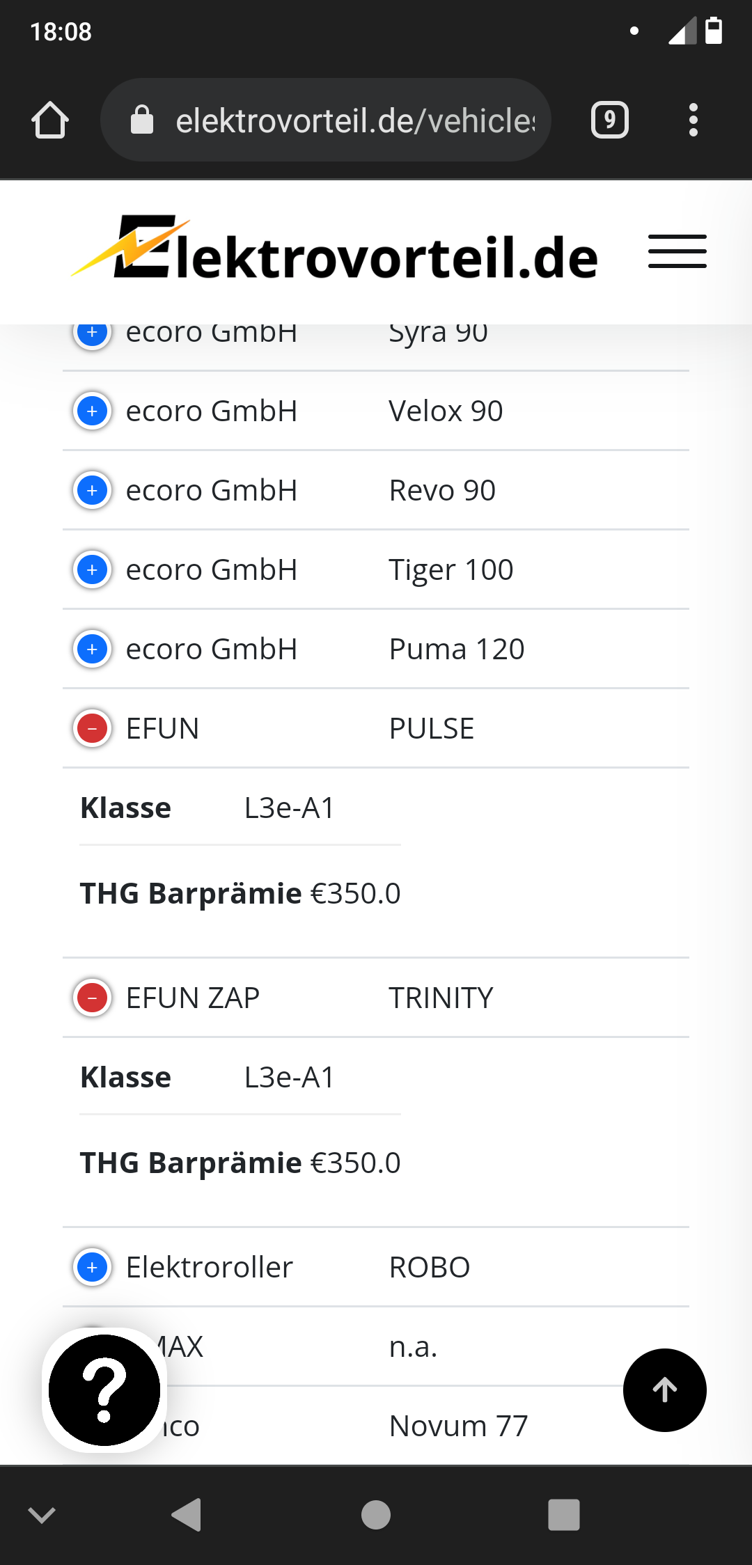 Da stehen auch unsere E Roller drin. Ich tippe aber mal darauf, dass nur die da drin stehen, von denen ein Antrag bereits eingereicht würde. Denn ein EFun Pulse steht drin, aber kein Puma oder Tiger. Auch mein C Evolution ist drin, aber noch kein CE04. Auch ein BMW I8 Fahrer gibt sich damit nicht ab :lol: