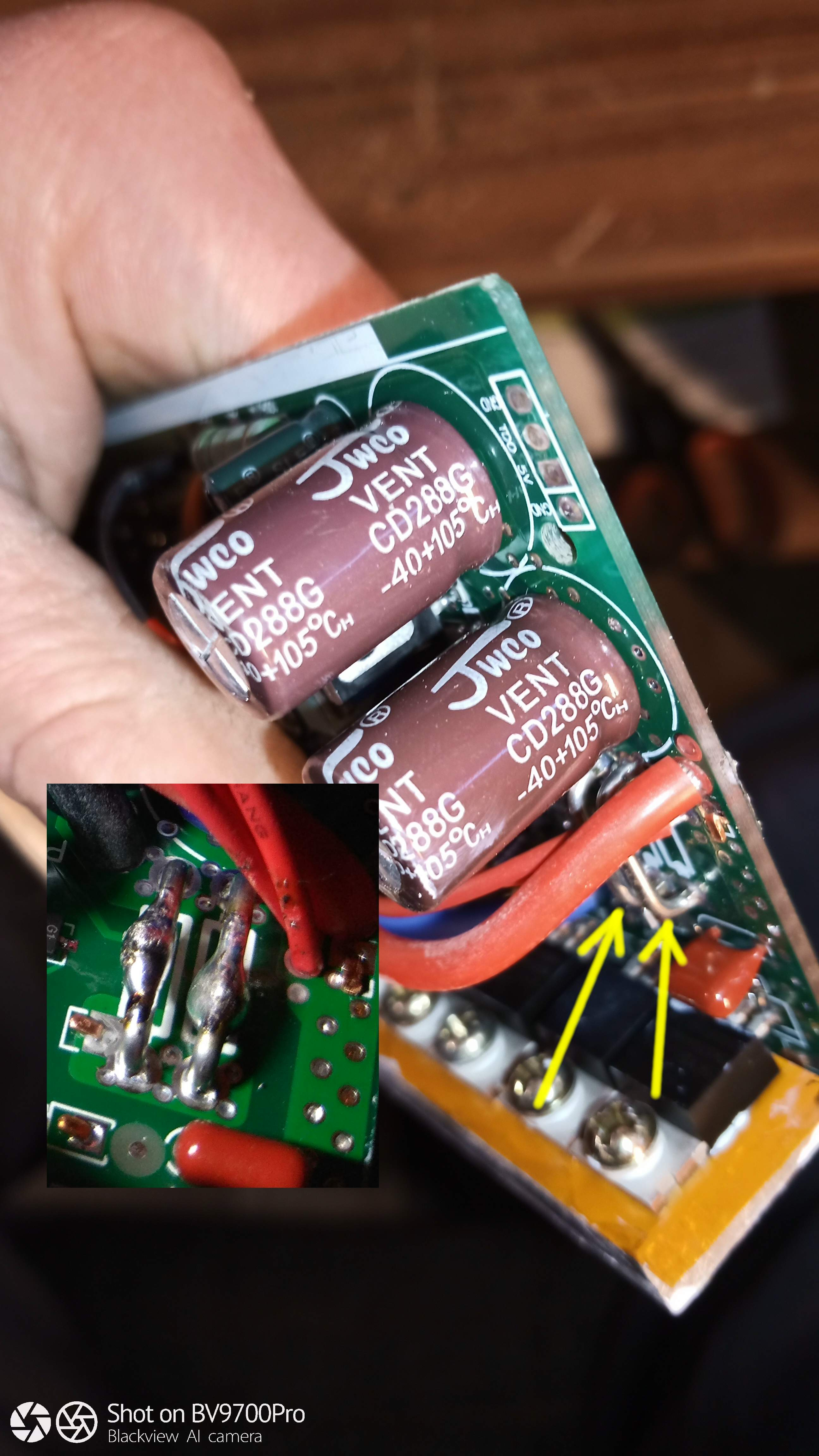 ok foto von der rückseite der kondensatoren kam noch...super :D das sieht auch gut aus. du kannst also auf einen 52 volt lithium akku gehen. damit ist auf jeden fall auch schon einmal mehr geschwindigkeit gewonnen. denke 5 km/h sollten damit drinne sein.