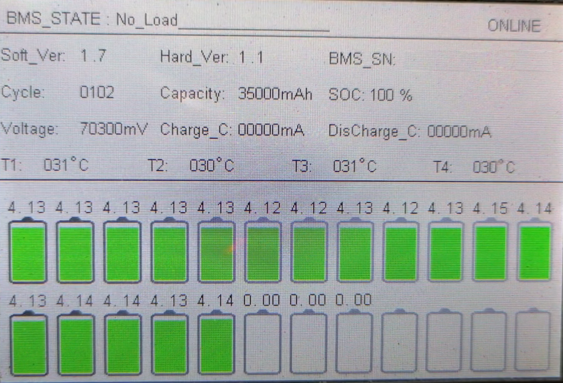 Du hast ja eine Akku-Anzeige im Fahrzeug und 100% werden bei ca 4,1V x 17 ~ 70Volt angezeigt und 0% vermutlich bei um die 3,2 V x 17 ~ 54,4 Volt angezeit, bevor der Motor-Controller den Fahrbetrieb einstellt (52-54V).