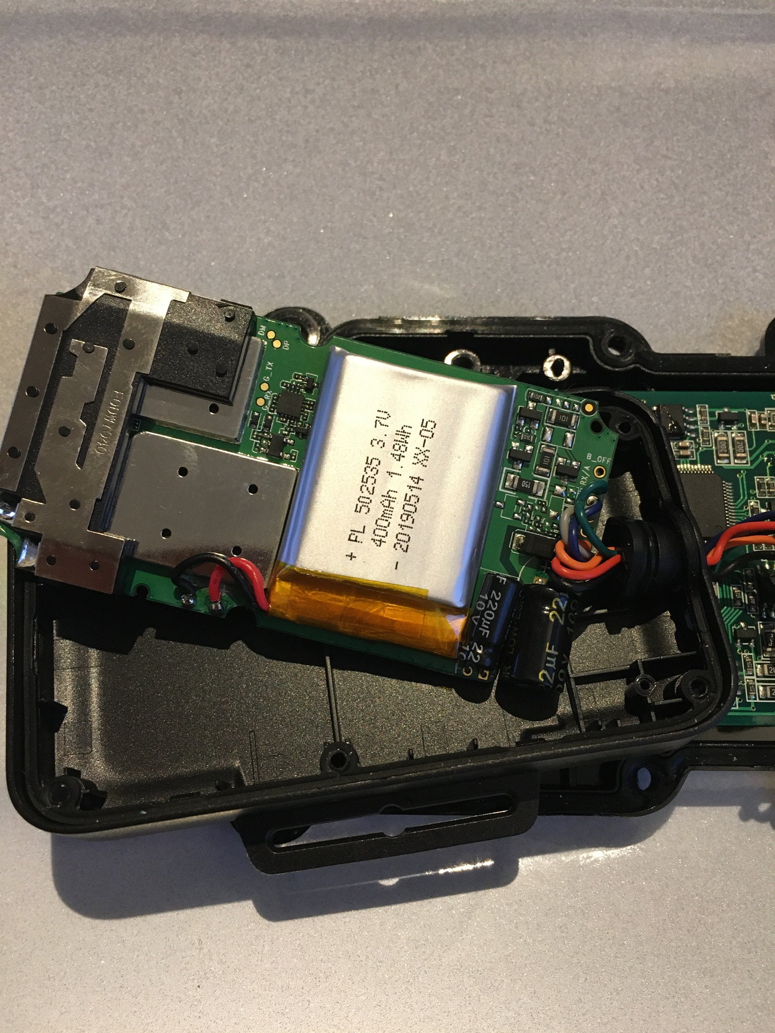 Auf der Rückseite der Platine ist ein Akku verbaut, als ich die Platine wieder umdrehte begann eine kleine „Lightshow“.