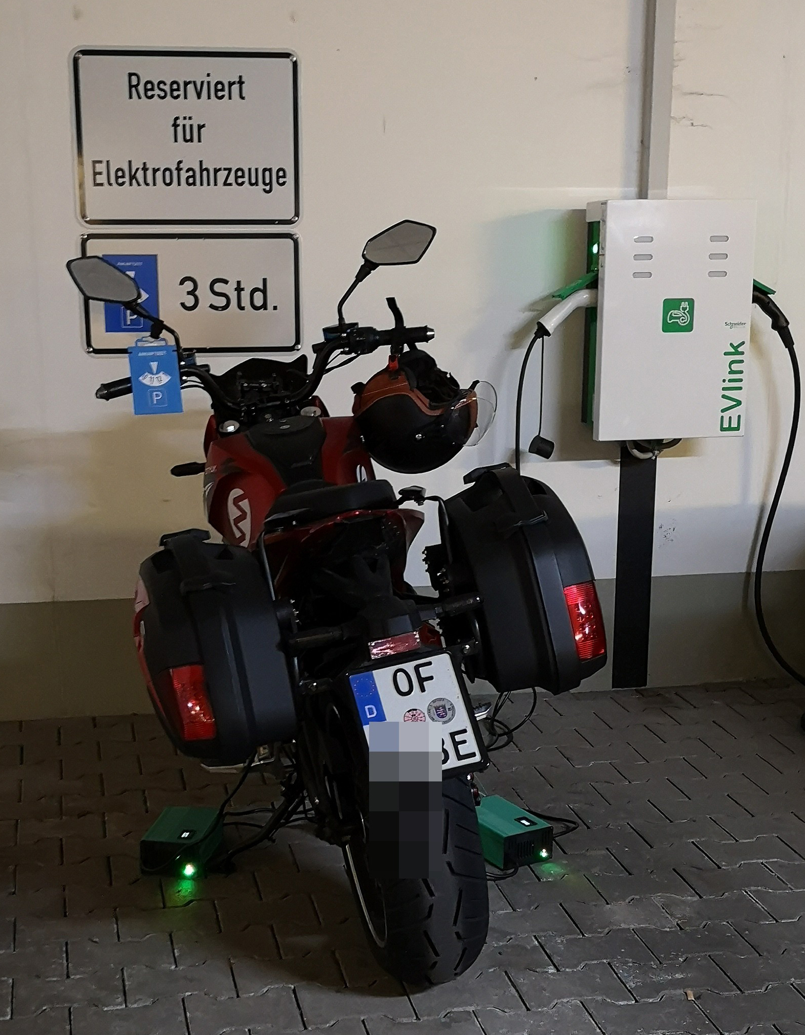 Hab mein Schild auch schon und auch aufs E verzichtet. Wenn ich an einer Ladesäule stehe und dort auflade, dann ist damit wohl deutlich ersichtlich, dass das Moped elektrisch unterwegs ist. Kein Benziner stellt sich an eine elektro-Ladesäule und stopft sich nen Schuko-stecker in den Tank nur um umsonst "parken" zu können.