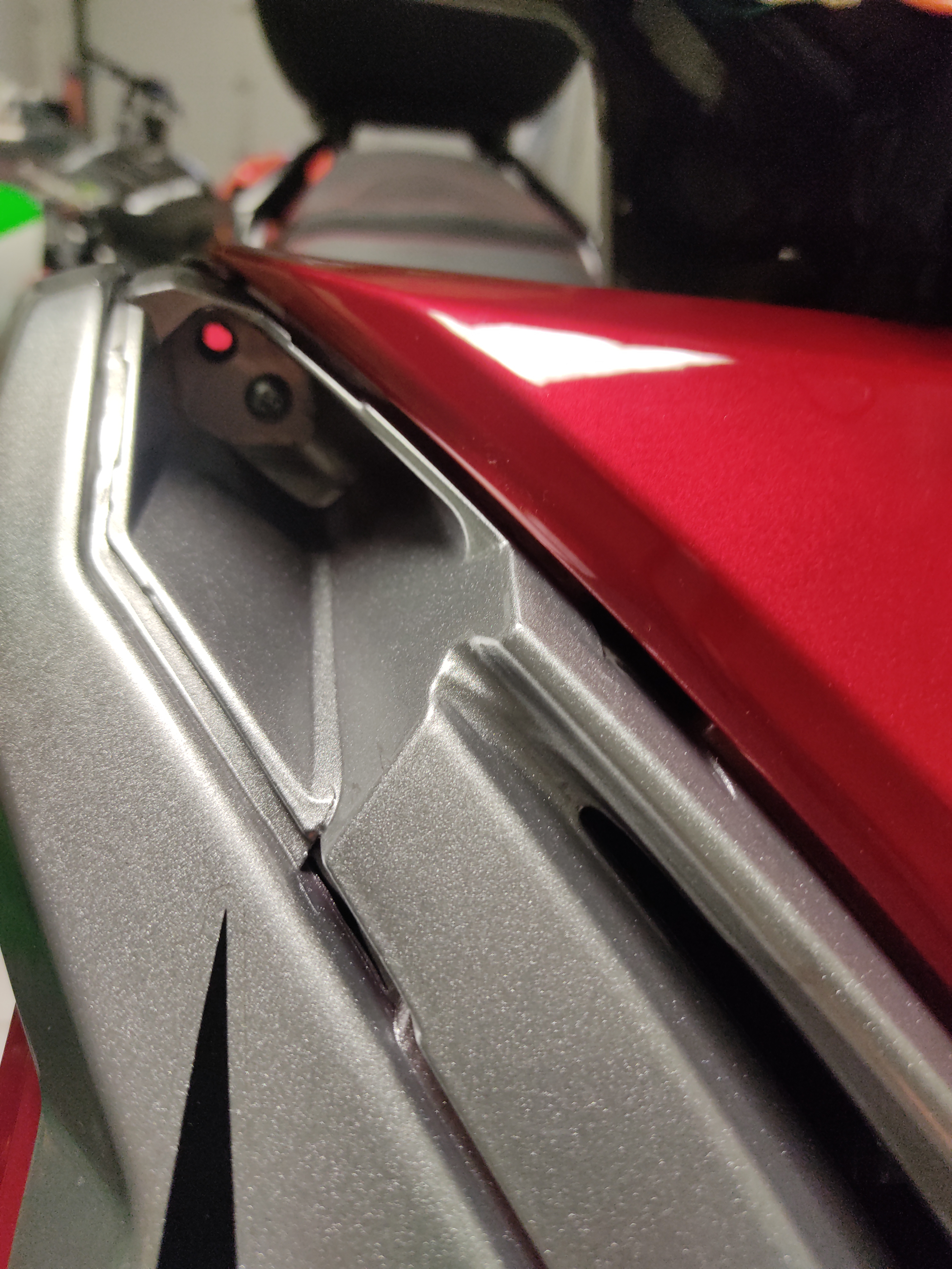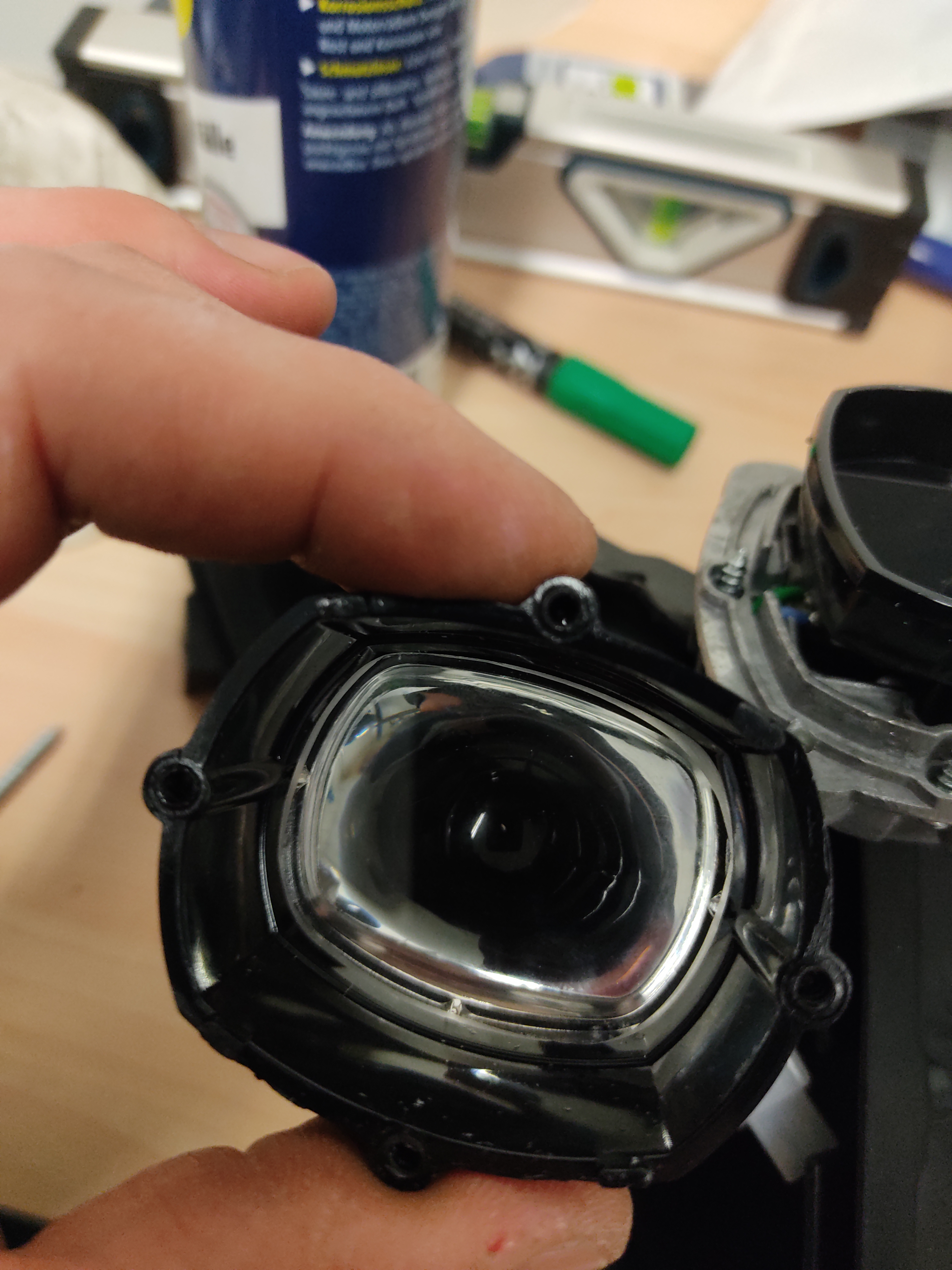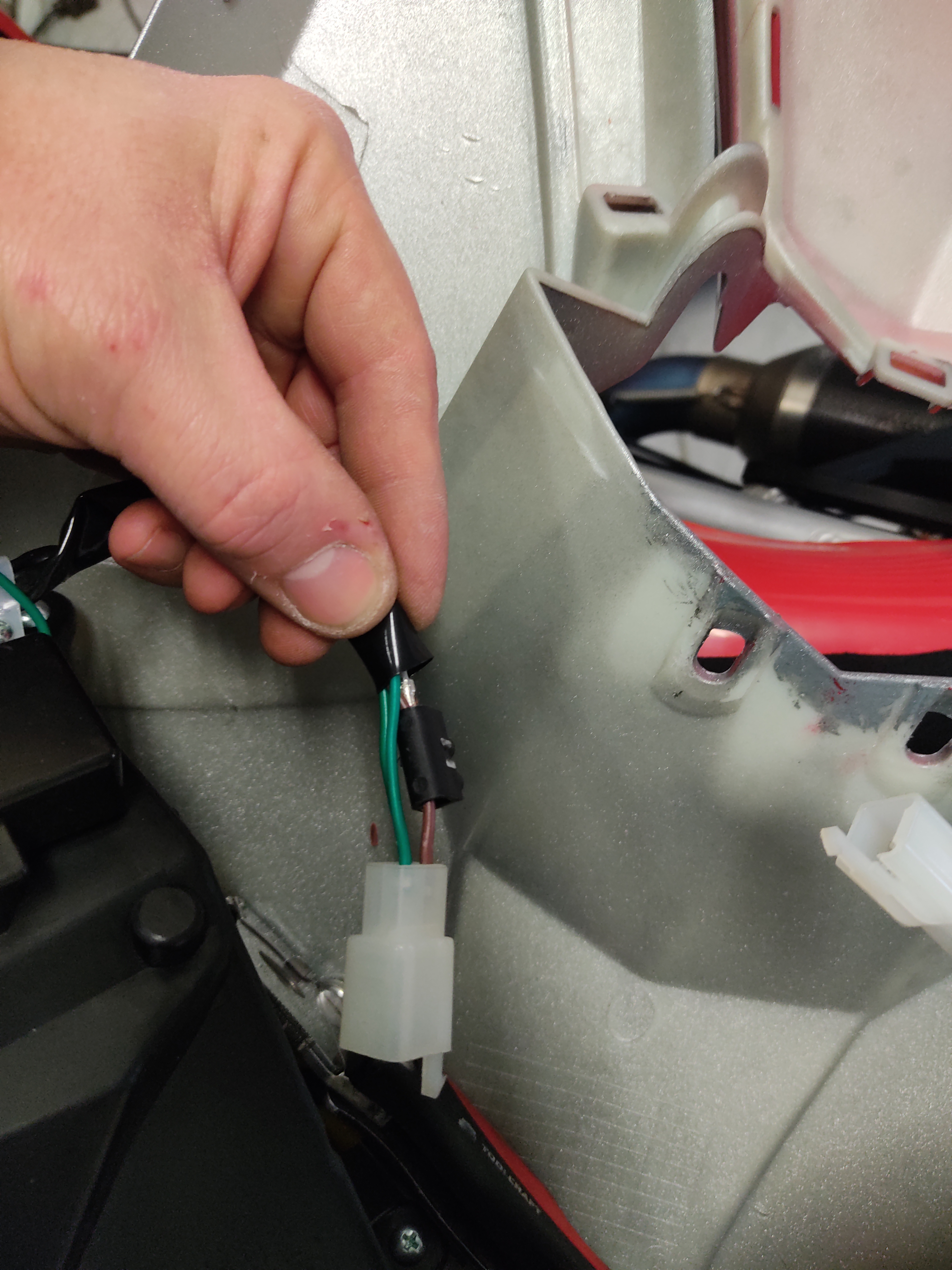 Ja, der Eimer ist Katastrophal verschachtelt. Es gibt 2 Schlüsselstellen mit versteckten Schrauben. Die obere schwarze blende von innen her geschraubt durch das schwarze plastikteil und der angedeutete Lufteinlass unter den Scheinwerfern. Dort ist eine ganz kleine Schraube mit kleinem Kopf angebracht. Den fake Einlass dann mit einer Spitzzange etc. ziehen. Der Rest ergibt sich dann eigentlich. Blinkgeber hab ich ja identifizieren können ist ein rundes Bauteil mit 3 Adern. Ist auch in einem Foto zu sehen. Der Dc-Dc Wandler, Binkgeber/Relais sitzen unter der vorderen Verkleidung. Vom Platz her würde ich sagen mit etwas Modifikation würden da 3x so viel Akkupower hinein gehen. Im jetzigen Zustand wäre das ein optimales Schmuggler Fahrzeug. Da gingen bestimmt 5 Stangen Kippen hinein.