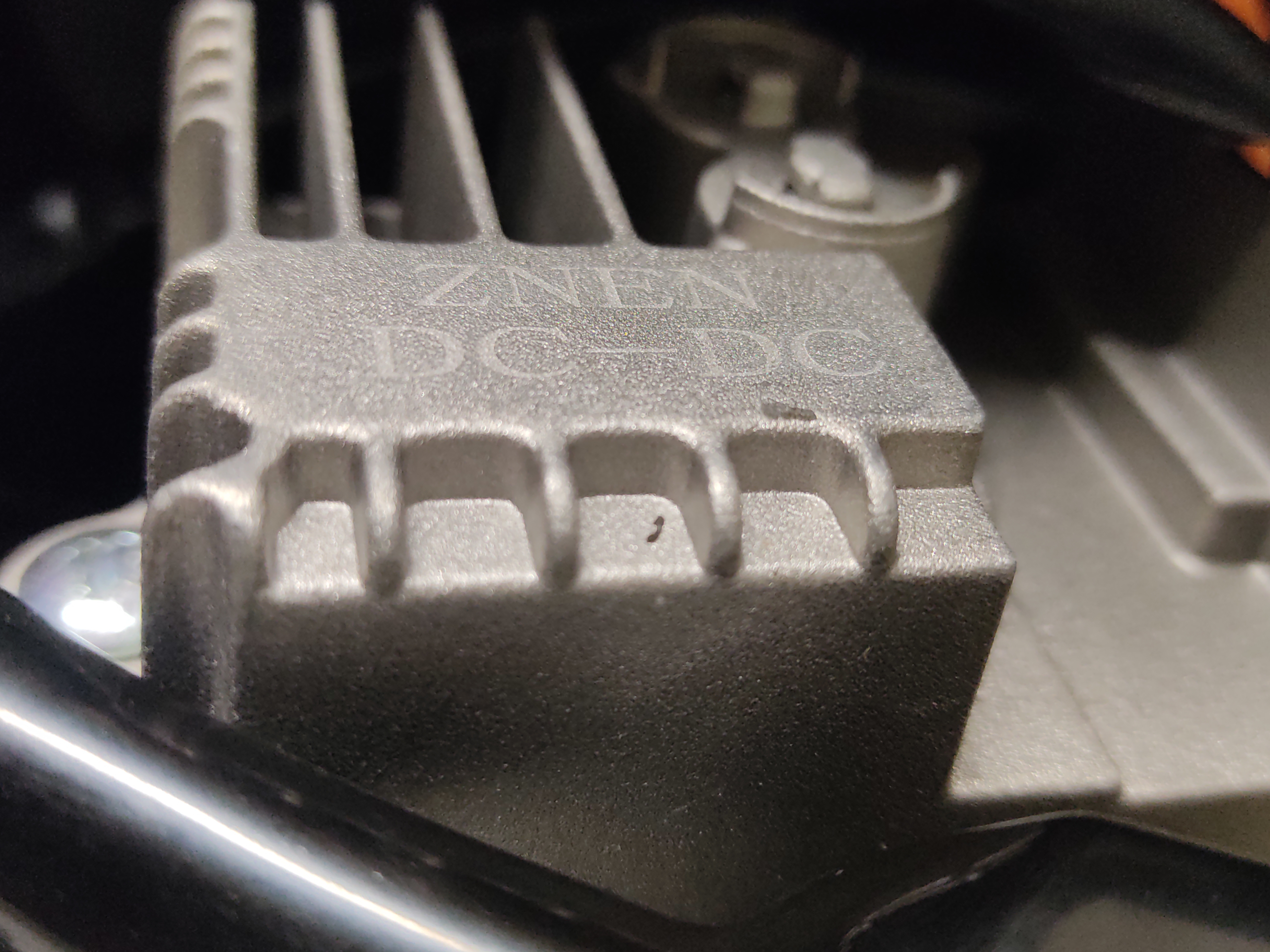 wäre außer dem Motor-Controller nur noch eine weitere kleinere Alu-Box im Fahrzeug, der DC/DC-Converter. Der macht aus 50-72 Volt-Batteriespannung die geforderten 13,2 Volt für das klassische Bordnetz (das auch Benziner hätten).