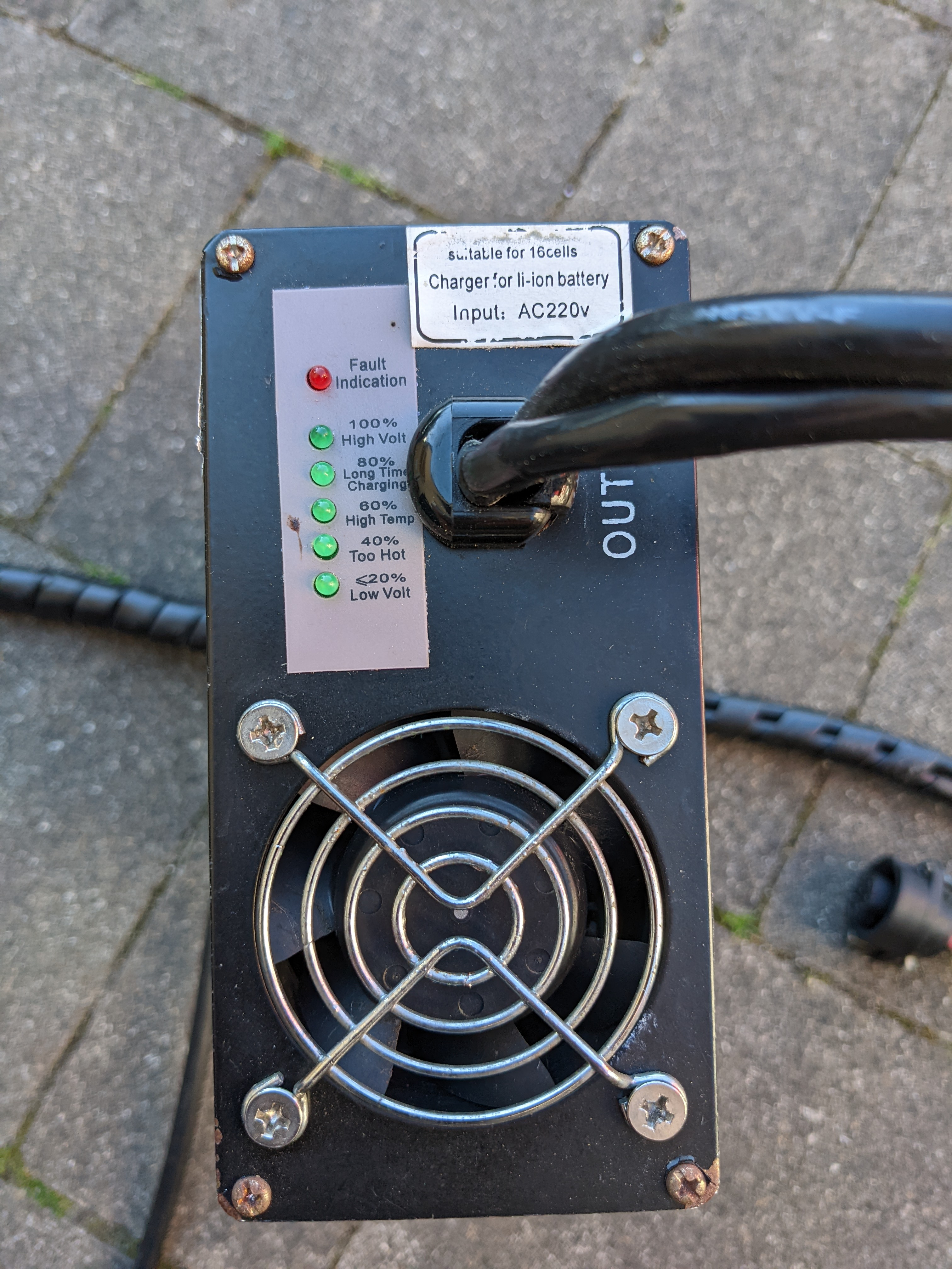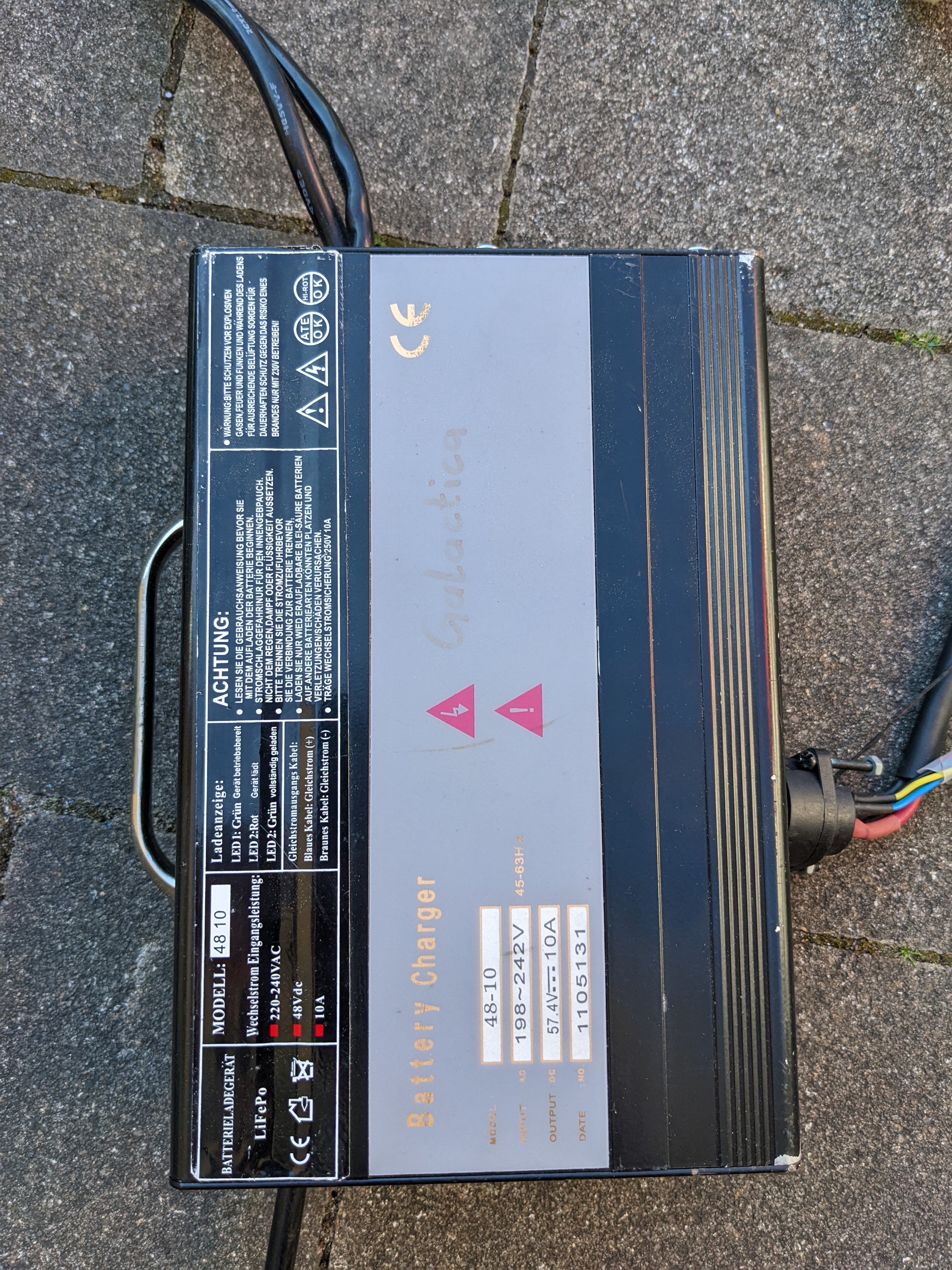 Ladegerät 10 A mit Gegenstück im Roller. Z.B. wenn defekt oder für die Arbeit oder zweite Wohnung;-)