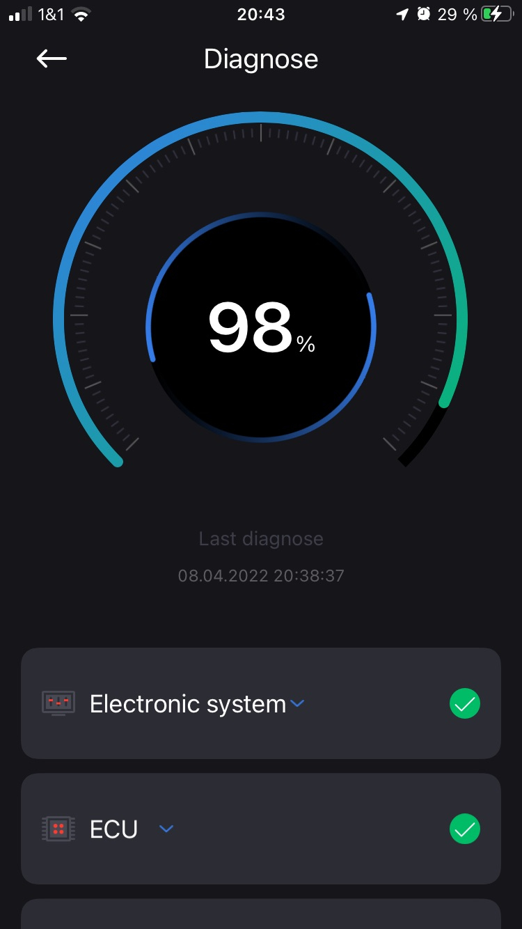Die Akkuanzeige der APP stimmt schonmal mit der Anzeige im Tachometer überein, was es mit der Kilometerangabe in der APP auf sich hat kann ich nicht beurteilen. Die APP hat bei mir vorher nur einmal funktioniert.