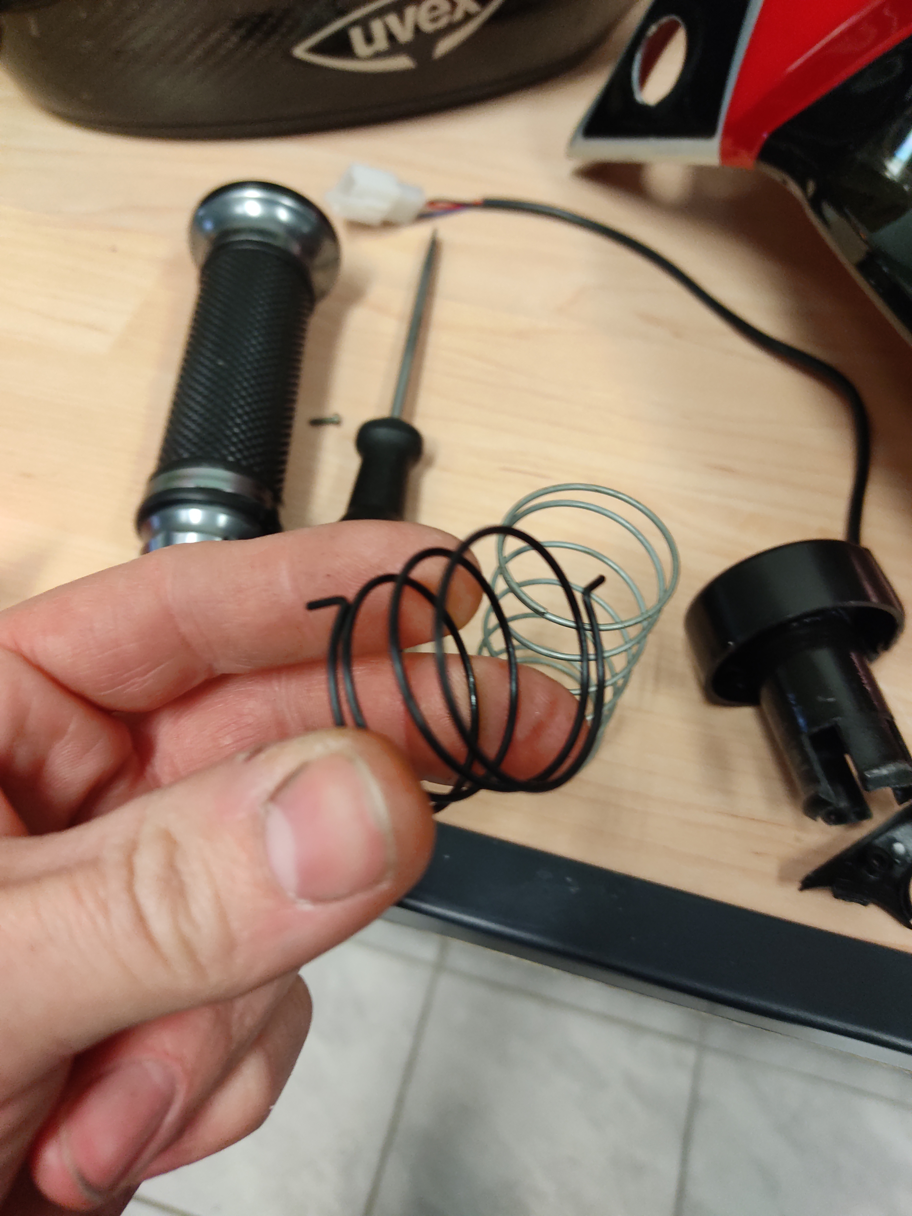 Der Griff hat mir keine Ruhe gelassen. Man muss mur einmal beherzt dran ziehen dann geht er auseinander. Keine Angst es geht nichts kaputt. Ich habe mir eine schwächere Feder eingebaut. Hat gut funktioniert. Dabei habe ich gleich noch einmal was getestet. Der Roller ist wahrscheinlich vom dümmsten Atu Mitarbeiter diagnostizierbar wenn er es nur wollte. Es wird z.b ein Fehler abgelegt wenn der Stecker zum Gasgriff getrennt wird. Es werden mit Sicherheit Fehler für alle relevanten Teile ausgespuckt wenn vorhanden. Wunderbar auszulesen und zu reseten mit jedem Bluetooth obd Stecker für 5€ und einer Android App.