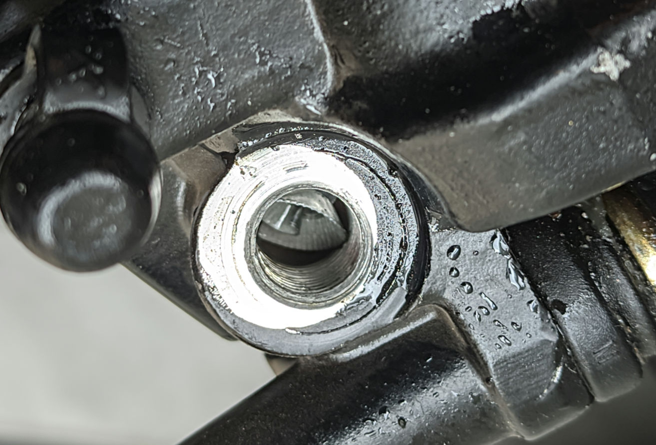 Die Späne waren in der Bohrung bzw. Gewinde der Hohlschraube zur Bremsleitung ! Der Bremssattel ist wahrscheinlich auch ohne Späne eine Fehlkonstruktion. Ein einfacher Einkolbensattel von einem Mofaroller wäre bestimmt besser. Es muss wohl wegen der großen Zulassung ein CBS sein. Das dieser nicht richtig funktioniert interessiert anscheinend nicht.
