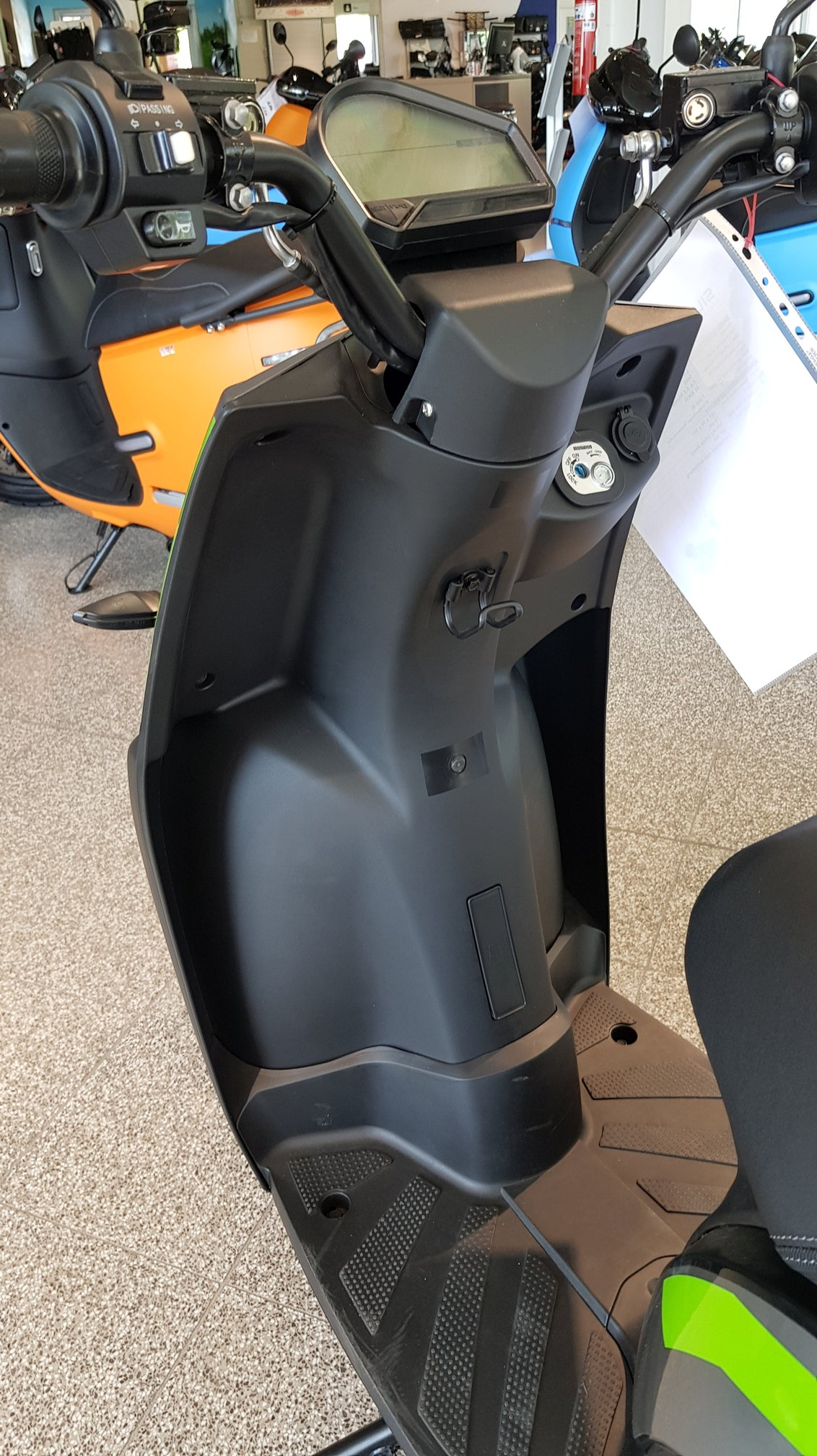 Das Handbuch für den S02 scheint vom S01 abgeschrieben: es gibt aber keine Möglichkeit, die Bank am Zündschloss zu entriegeln. Dafür braucht es das (immerhin sehr solide wirkende) Schloß unter der Bank. Ich habe blöderweise vergessen zu checken, ob der Doppelbremsgriff einen versteckten Motor in Gang setzt. Der scheint mir bei der S01 vorn zu sitzen und am gleichen Bowdenzug zu ziehen, womit die Wahrscheinlichkeit einer "Fernentriegelung" eher in weite Ferne rückt beim S02.