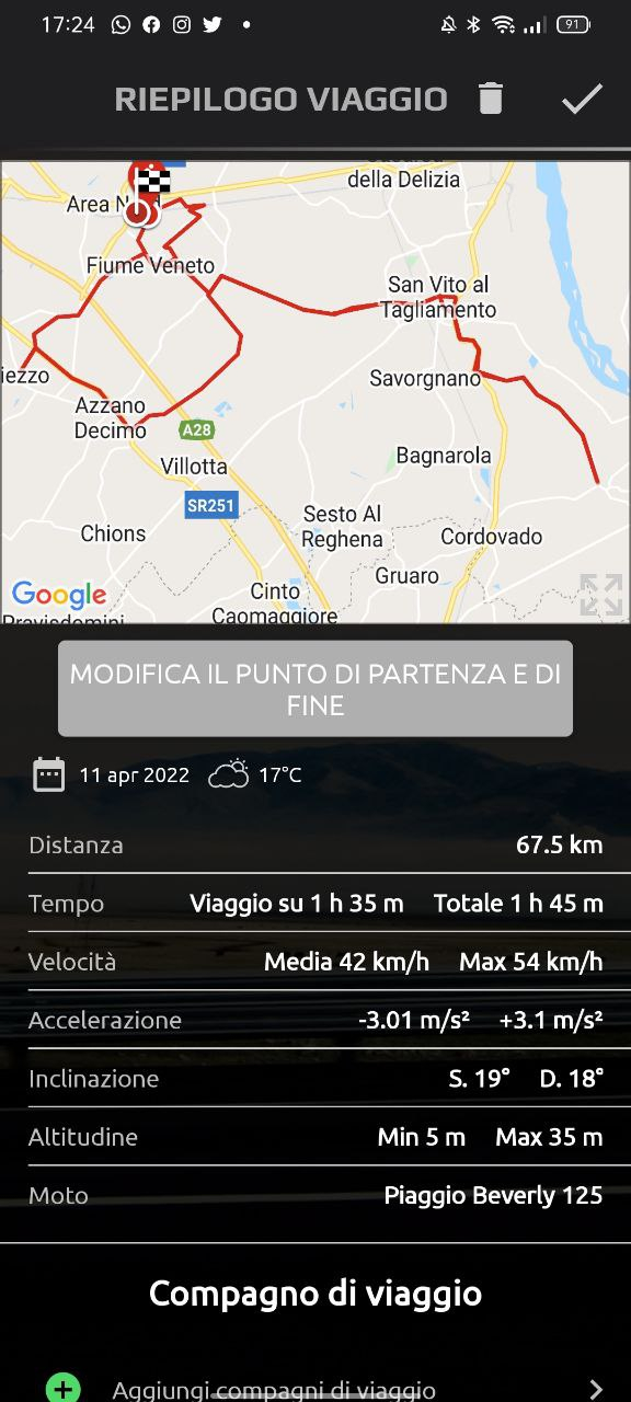 They told me to test the scooter on my usual route (home-work) taking the ODO km indicated on the invoice as the starting mileage (924km); during peak hours (morning and lunch) I run my route which includes the SS13 of Pordenone in the stretch
