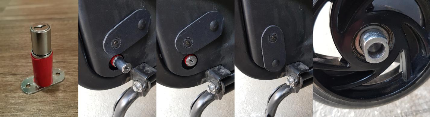 Der Gummilappen bringt nicht allzuviel, der Dreck kommt nicht nur vom Hinterrad, sondern auch aus dem Akkuschacht. Und diese Möbelschlösser haben seitlich Öffnungen, durch die der Sand eindringt. Bin gerade dabei, mir eine lange Kappe zu drucken, die das ganze Schloss ringsrum weitgehend abdichtet. Wird einfach von hinten auf den Schließzylinder aufgesteckt.