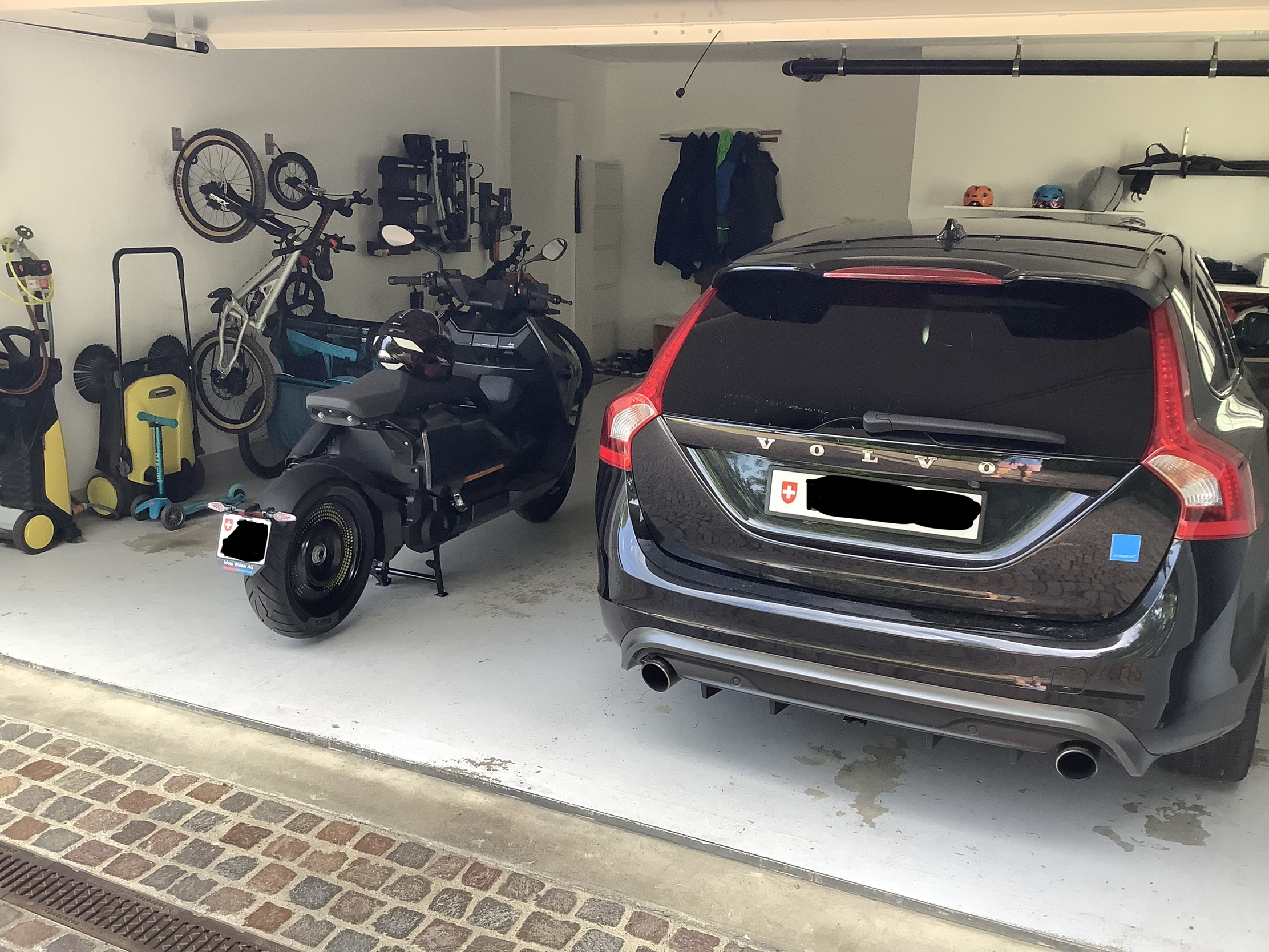 Achja, heute noch den Kleber fürs Hinterrad montiert in der Garage, habs nahezu perfekt hingekriegt. Und die Steckdose hats auch reingeschafft