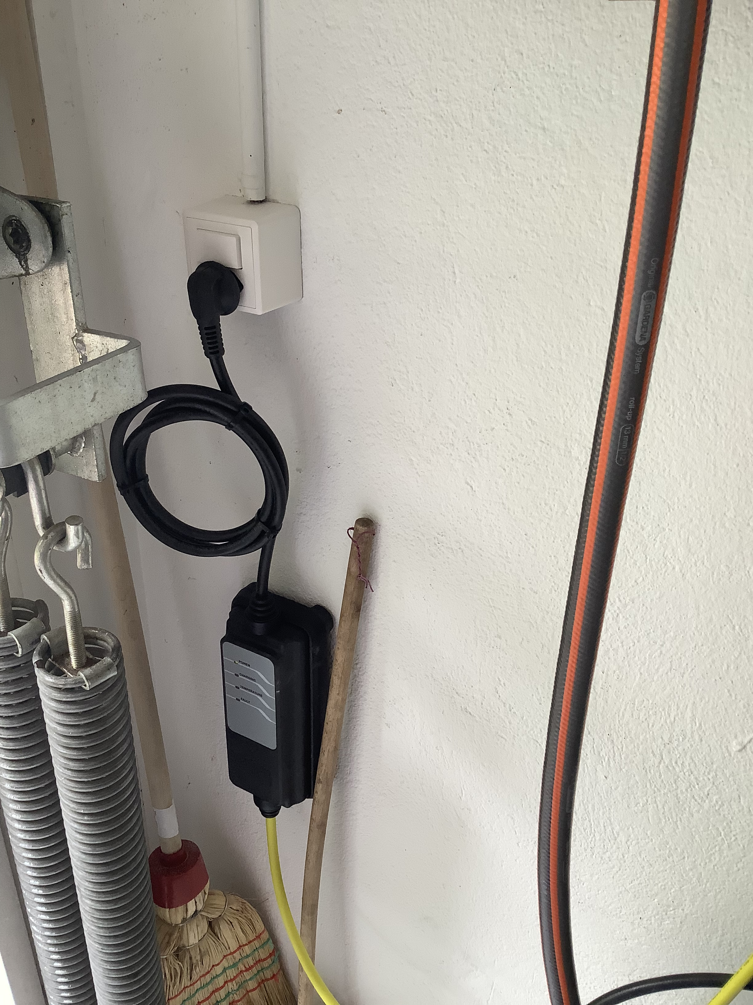 Achja, heute noch den Kleber fürs Hinterrad montiert in der Garage, habs nahezu perfekt hingekriegt. Und die Steckdose hats auch reingeschafft