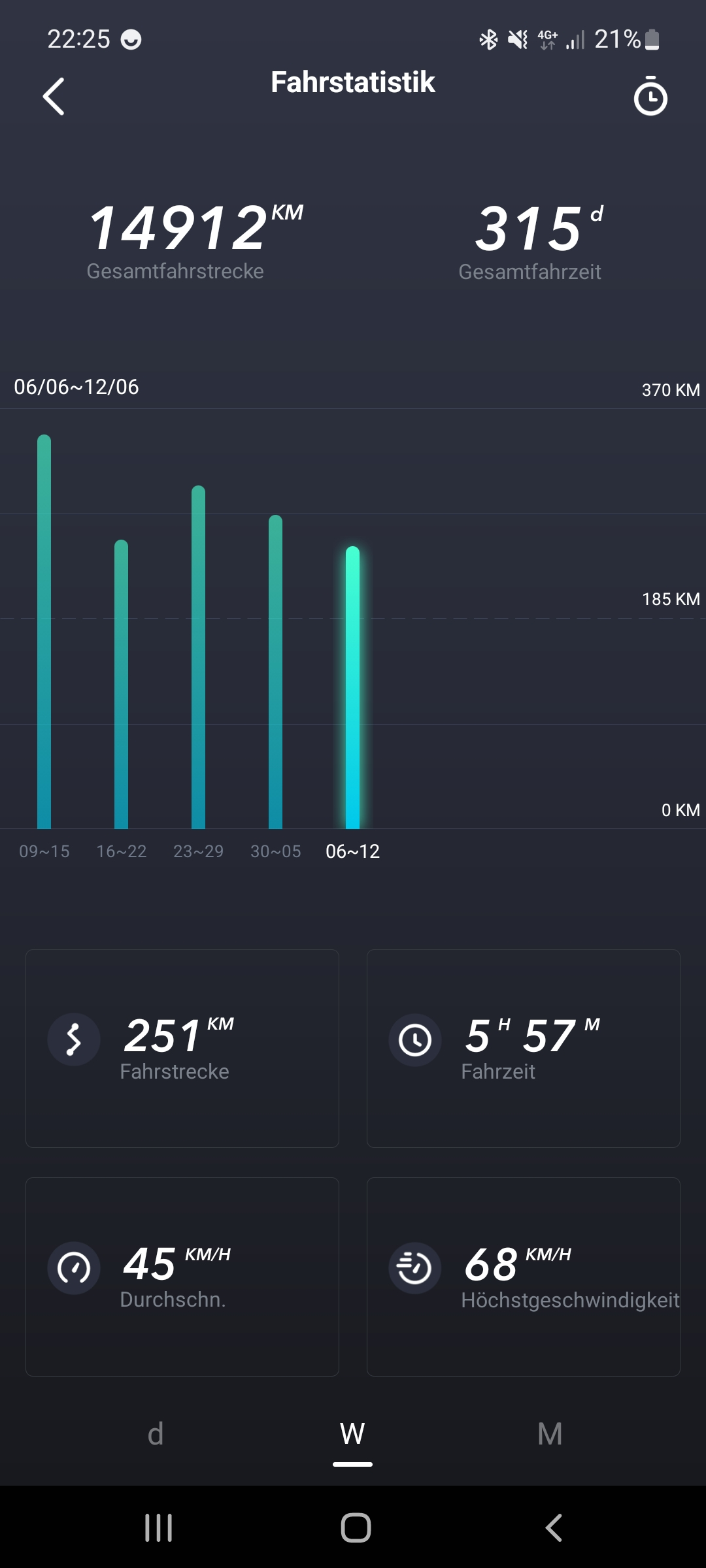 Letzten Monat sind sehr viele Km druff gekommen. Jetzt reichts erst mal. Mein E-Fahrrad (Pegasus Strong ) ist vom 10.2021 und hat noch nicht mal 1.000 km auf dem Tacho. Das muss ich jetzt mal abändern. Und deshalb bleibt der Roller sehr oft stehen. Sonst ist es bei dieser Laufleistung von ca. 1150 km pro Monat auf das Jahr gerechnet nach 6 Jahren Schrott.