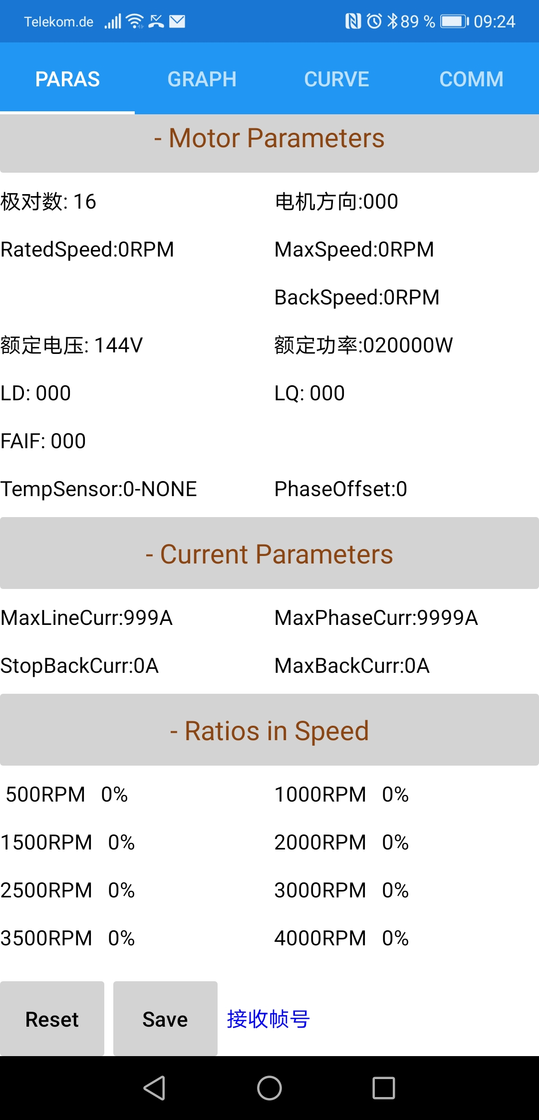 Seid mit den Parametern vorsichtig und spielt vor allem nicht mit den Motor Parametern rum!