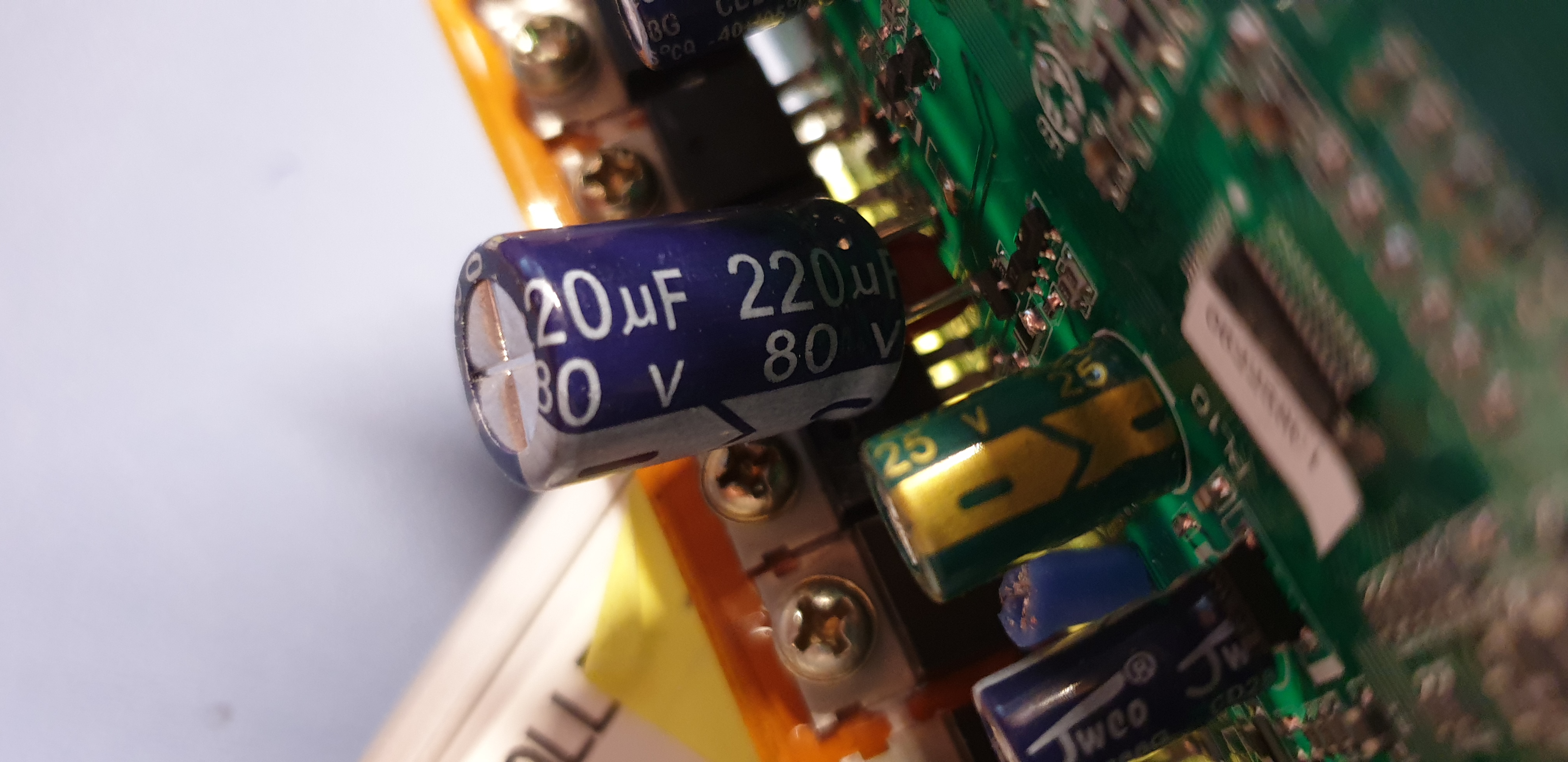 Nur Ersatzteil: Lassen wir den kleinen 100V mal weg (sollte reichen), dann müsste ich 5 tauschen. Also, den µF-Wert behalte ich bei und erhöhe nur die Spannung?