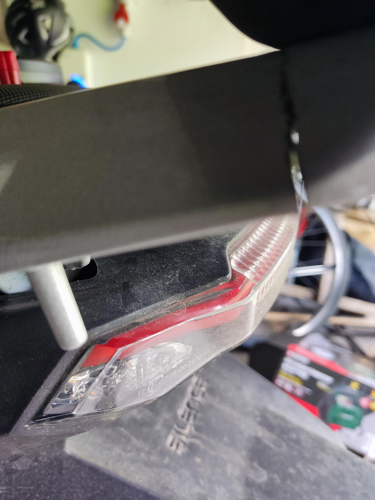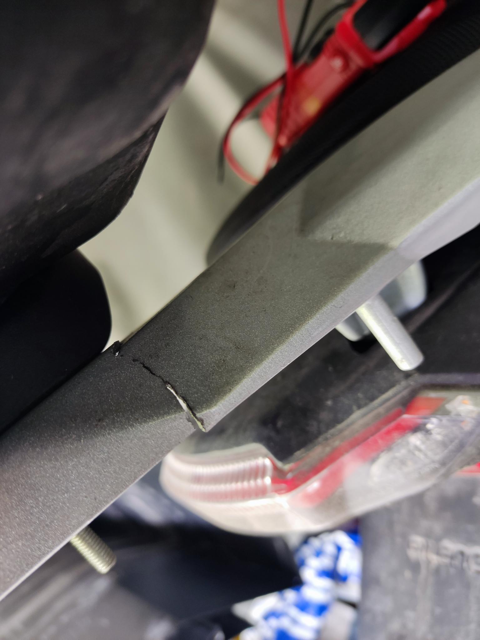 Der Gepäckträger für's Topcase ist beidseits durchgebrochen. Quasi an der "Sollbruchstelle", also da, wo sich die Traversen verjüngen.