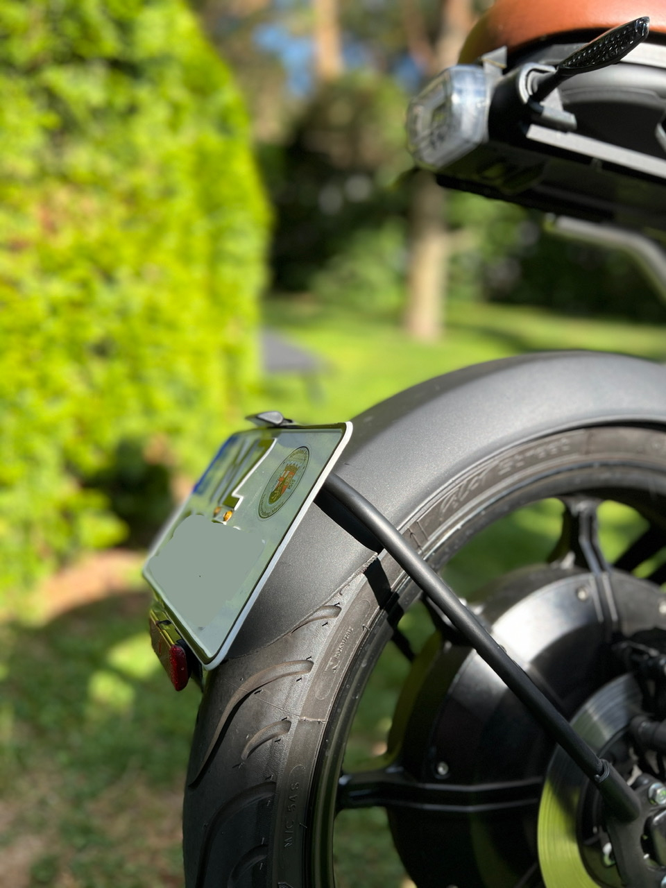 Habe mein Kennzeichen samt KZB nach unten gebaut. Beleuchtung und Blinker bleiben oben. Der Halter für den Reflektor habe ich vom S-Pedelec genommen