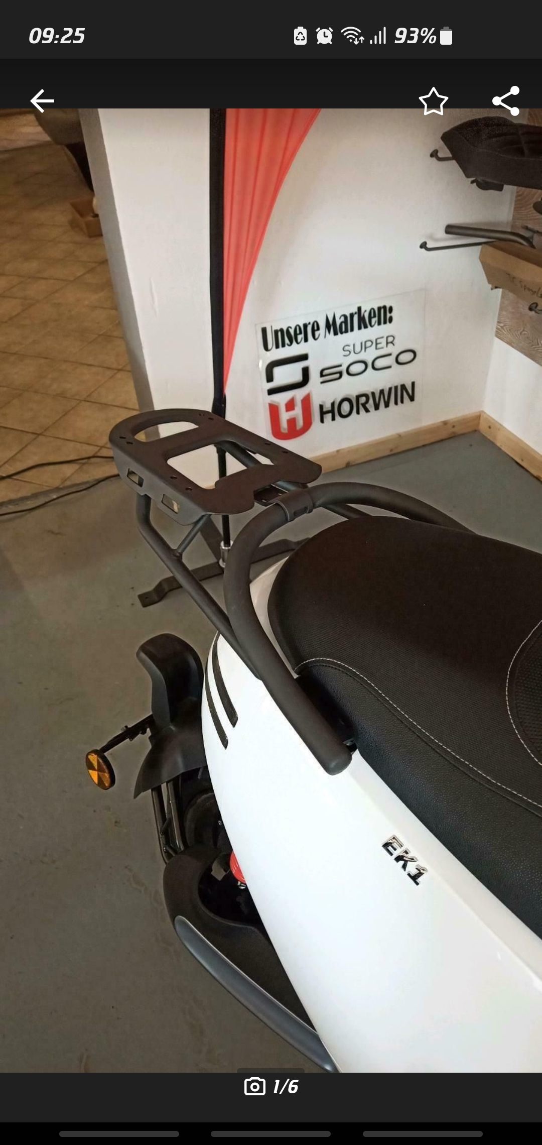EK1 und EK3 Rack / Gepäckträger , NEU, Original Horwin Zubehörteil. Preis für den EK3 ist um 10 Euro höher, da ein zusätzlicher Bügeln benötigt wird. Das Rack, der Gepäckträger passt nur an den runden Haltegriff des EK1. Zum Rack gehören auch alle Schrauben und Halter.