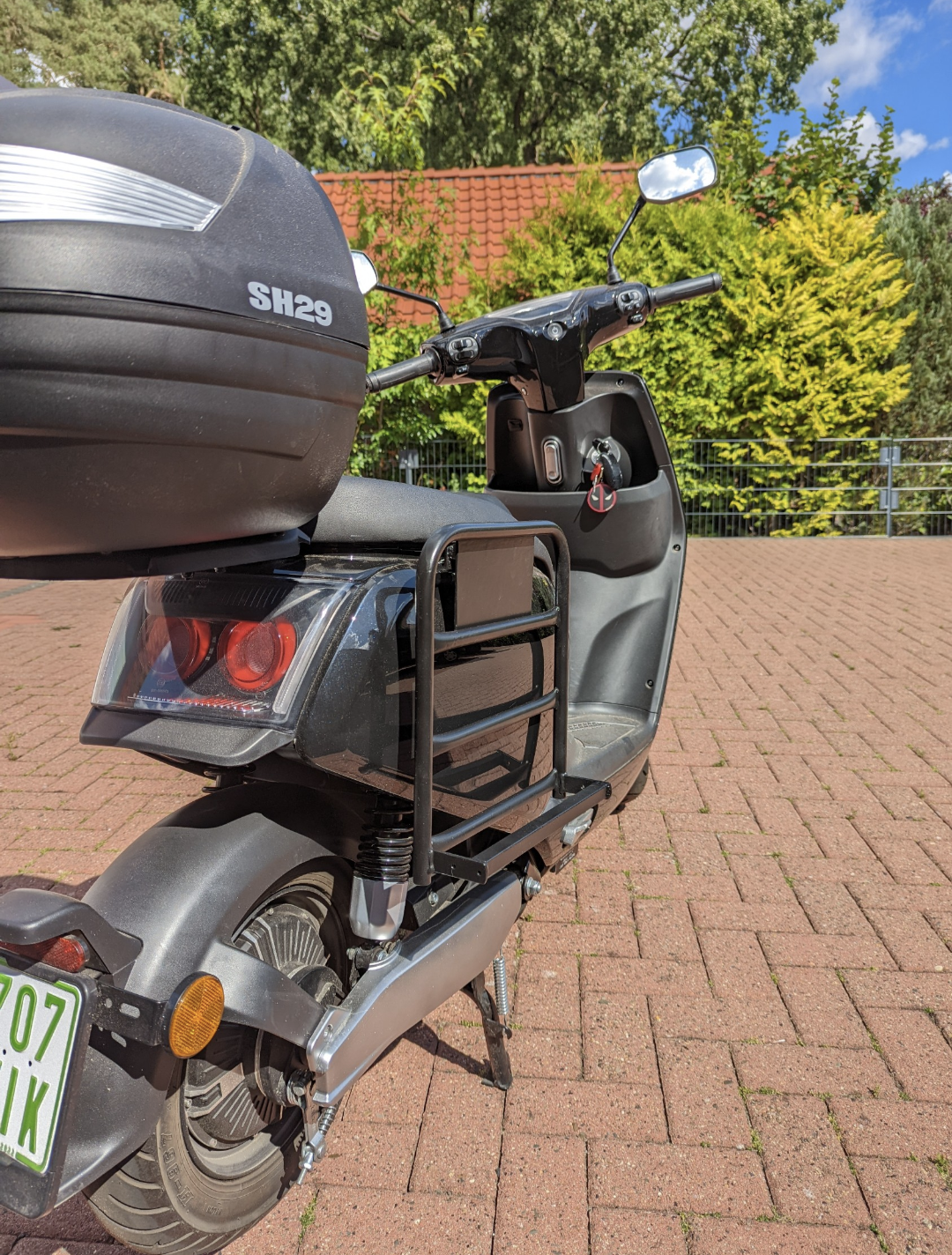 Schade ist nur das es kein Zubehör für den Lima gibt, deswegen hab ich mir jetzt einfach selbst was angebaut womit sich auch ein wenig mehr mit transportieren lässt. Der Nächste Roller wird dann aber eher ein NIU oder Segway wo man deutlich mehr Möglichkeiten mit hat.