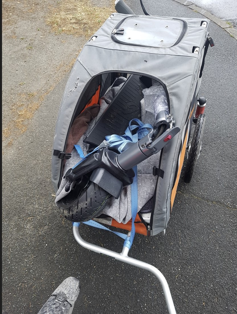 gestern hab ich mir den Paul von Trittbrett gekauft. Probe gefahren hab ich den vor ner Woche schon. Hat mir auch zu gesagt. Dann wollte ich mir den holen und alle waren weg. Verdammt. Vorgestern Abend kamen dann drei Paletten mit Pauls an. Am Morgen waren online schon 2 Paletten weg gewesen. Als ich dann gegen 10h einen kaufen wollte waren nur noch drei davon da. Gesagt getan einen gekauft und in den Hundeanhänger verfrachtet. Weil ich ja noch kein Nummernschild für den hatte musste ich die 11 Kilometer den Paul im Hundeanhänger nach Hause fahren. Zu Haus erst mal alles auf festen Sitz der Schrauben geachtet und die Reifen auf 3,5 Bar aufgepumpt. Dann ab auf die Straße zum Wald. Für mich ist der Paul dafür da wo ich in den Wäldern herumfahre. Ansonsten würde ich ja das Fahrrad nehmen aber die DB Bahnen sind so voll morgens und abends das ich mit dem Paul da besser weg komme.