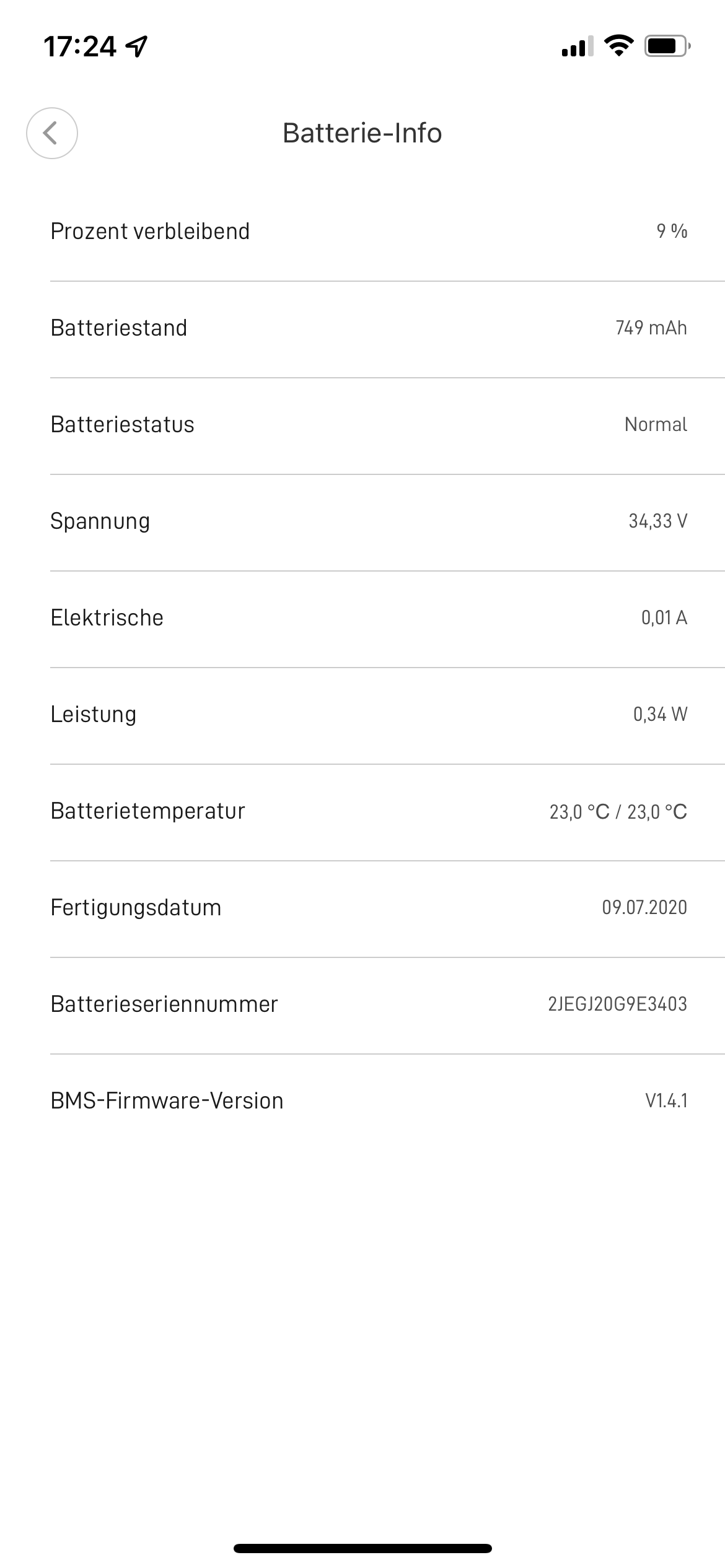 Der Roller hat noch 9%, aber beim Laden erkennt der Roller nicht, dass er geladen wird. Am Ladegerät leuchtet auch weder eine rote noch grüne Lampe.