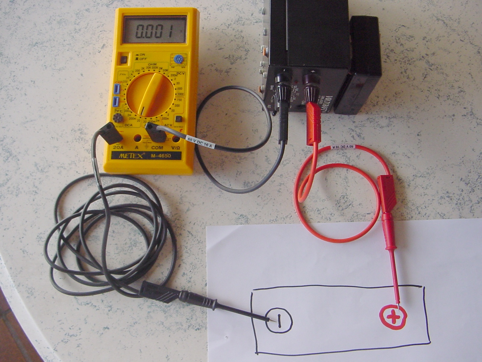 Ändert sich der angezeigte Ladestrom im Labornetzgerät mit / ohne eingeschleiftem Vielfachmeßgerät? Im Prinzip könnte man mit einem 2. Vielfachmeßgerät den Spannungsabfall über dem 10ADC Vielfachmeßgerät messen.......