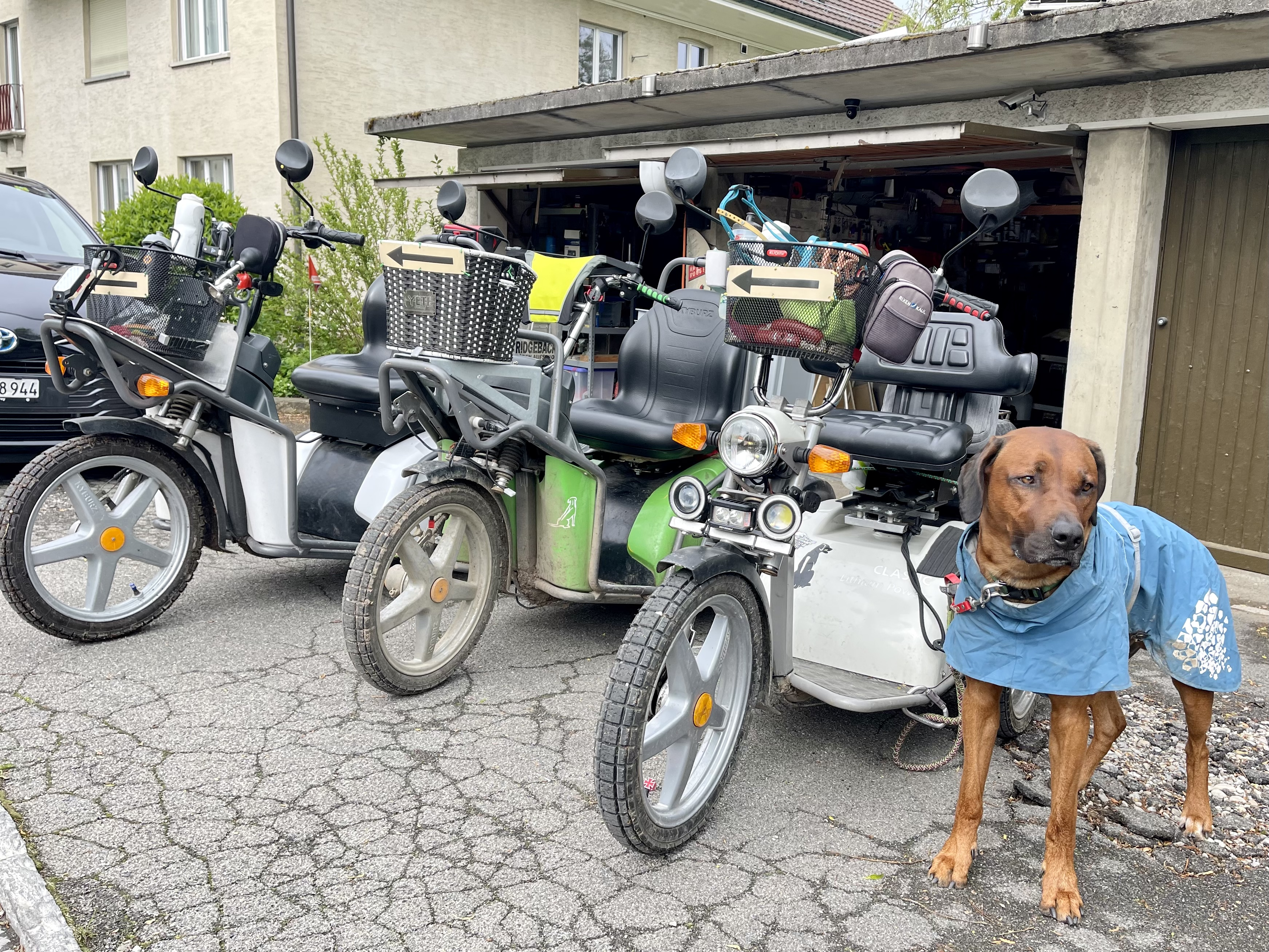 Ich bin seit 2017 begeisterter Kyburzfahrer. Da Ende 2016 ein Sprunggelenk OPS Anstand und wir einen jungen Rhodesien Ridgeback hatten war die Lösung ein sog. Seniorenmobil nur das Teil war dann in der Praxis nicht gerade optimal. So kam ich zu Kyburz. Zuerst hatte ich einige Classic und die angepasst. Da die 10 er Version für unseren Hund zu langsam war, kaufte ich einen der ersten SecondLife der Post und habe den für uns optimiert. Anständiges LED LICHT um Nachts durch den Wald zu düsen. Mit 45 sind wir einigermassen gut unterwegs ist für den Ridge manchmal zu langsam aber sonst Okay. Momentan sind wir mit einem DXP und einem Lithium Classic 30 optimal geerüstet. Einer lädt immer an der Solaranlage der Andere ist einsatzbereit.Hen hat geschrieben: ↑Mo 31. Aug 2020, 14:52Hallo miteinander,