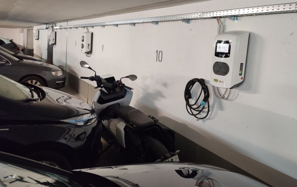 Von gut 70 Stellplätzen wurden nun zehn nachträglich mit Wallboxen ausgerüstet, damit kostet ein Stellplatz dann 30€ mehr.