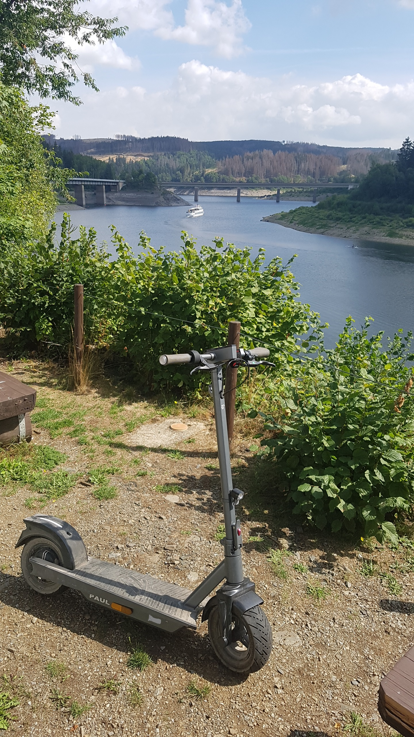 am Sonntag ging es von Goslar Hauptbahnhof über Oker die L498 rauf bis zur Okertalsperrmauer. Von dort ging es um den Okersee und an der Mauer wieder zurück nach Goslar zum Bahnhof. Der Akku war vollgeladen als es am Bahnhof Goslar losging. Temperatur, ca. 22° und Wind 8 km/h Fahrer 85kg. Der Paul zog die Seigung von Goslar zur Staumauer durchweg mit 22 km/h durch. Hin und zurück mit dem Paul hat den ganzen Akku gekostet. Also nichts mit ich fahr noch wohin. Keine Chance.