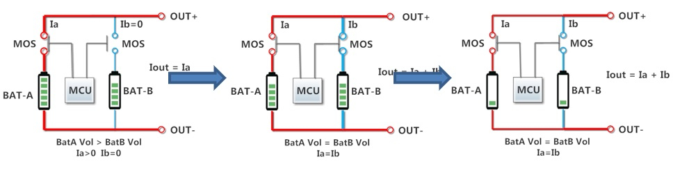 Wenn schon denn schon brauchst du einen Y Controller mit Mosfet die immer hin und herschalten können. Sowas gibt es in verschiedenen größen. Wichtig dabei ist das die Spannung sowie der Batterie Typ immer gleich sein muss.