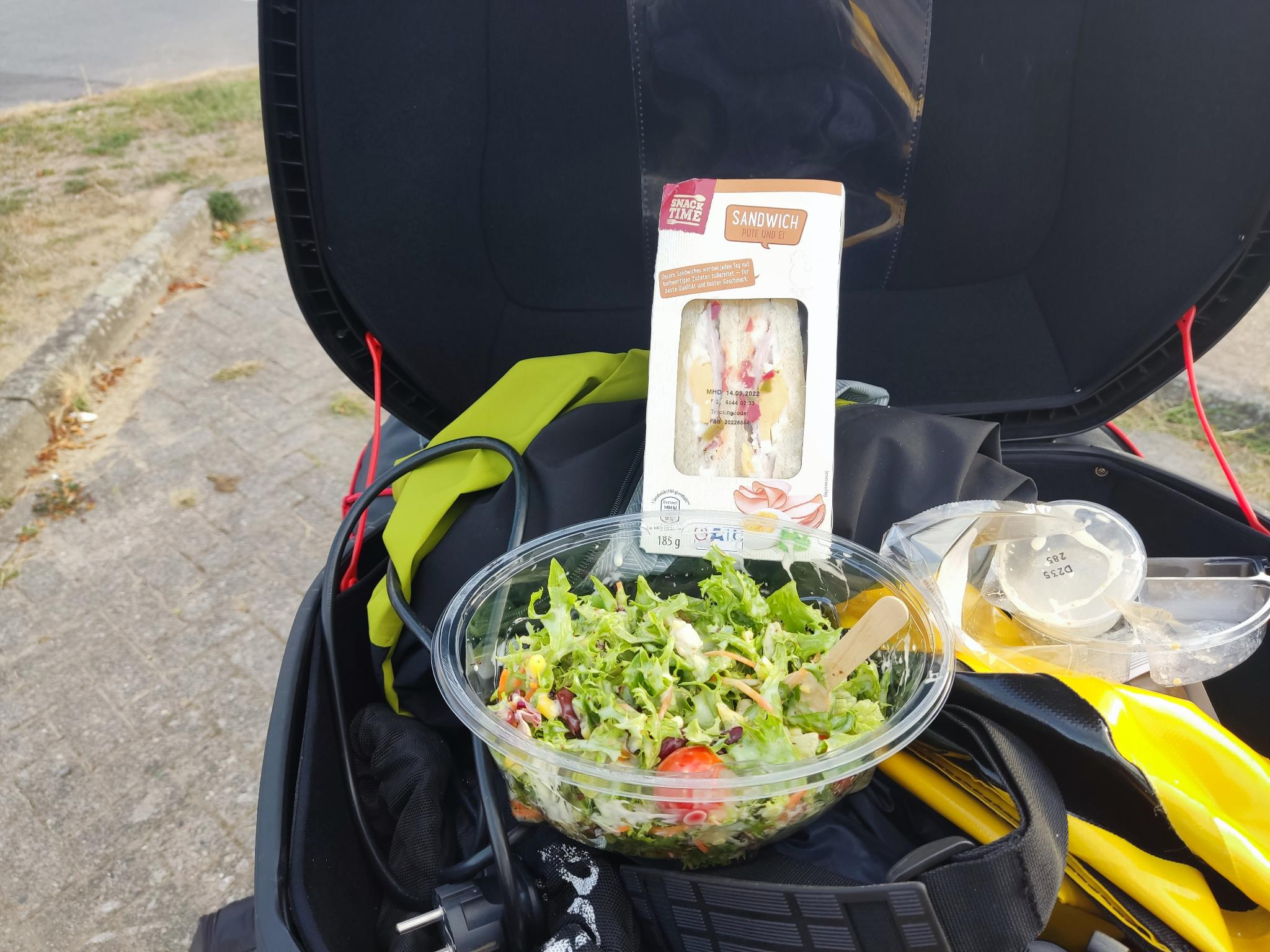Hab heute Mittag, Mal wieder in Ladenot, 2 Stunden in der prallen Sonne gebraten, keine Bank, kein Nix. Da kommt der Selfmade Café und Verpflegung wirklich gut..