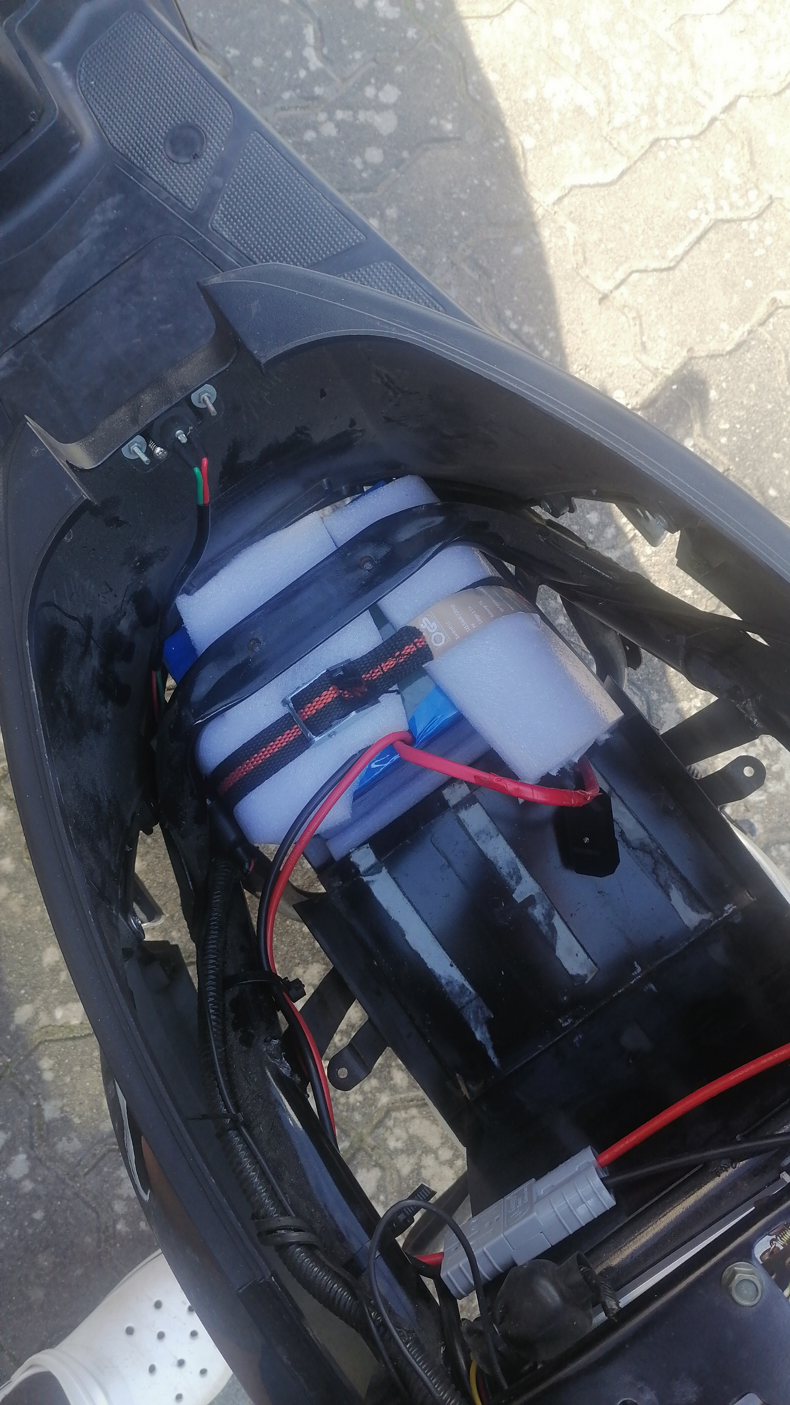Mein liion Umbau ist auch fertig. Hat mich aus China ziemlich genau 330 EUR gekostet. Leider musste heute geschoben werden da der egrace Controller wohl bei 66V schon abschaltet das bms sollte erst bei 56v abschalten. Jetzt hab ich den Controller erstmal die unterspannung auf 56V eingestellt. Der denkt ja immer noch er hat Blei Batterien drin. Die Geschwindigkeit ist zumindest sehr gleichmäßig und endlich fährt das Teil such mal 50kmh. Verbaut habe ich 72v 30Ah der akku wiegt etwa 11kg beim Ausbau der bleibatterien war ich wieder mal entsetzt. Das Kabel zur Sicherung war gerade so mit ein paar litzen eingeklemmt. Von aderendhülsen keine Spur wenn man bedenkt welch hohe Ströme da teilweise fließen wundert es das nicht mehr abbrennen. Jetzt sind schöne Anderson mit 50A als Steckverbindungen dran. Das ist jedenfalls um einiges besser als die original Version.