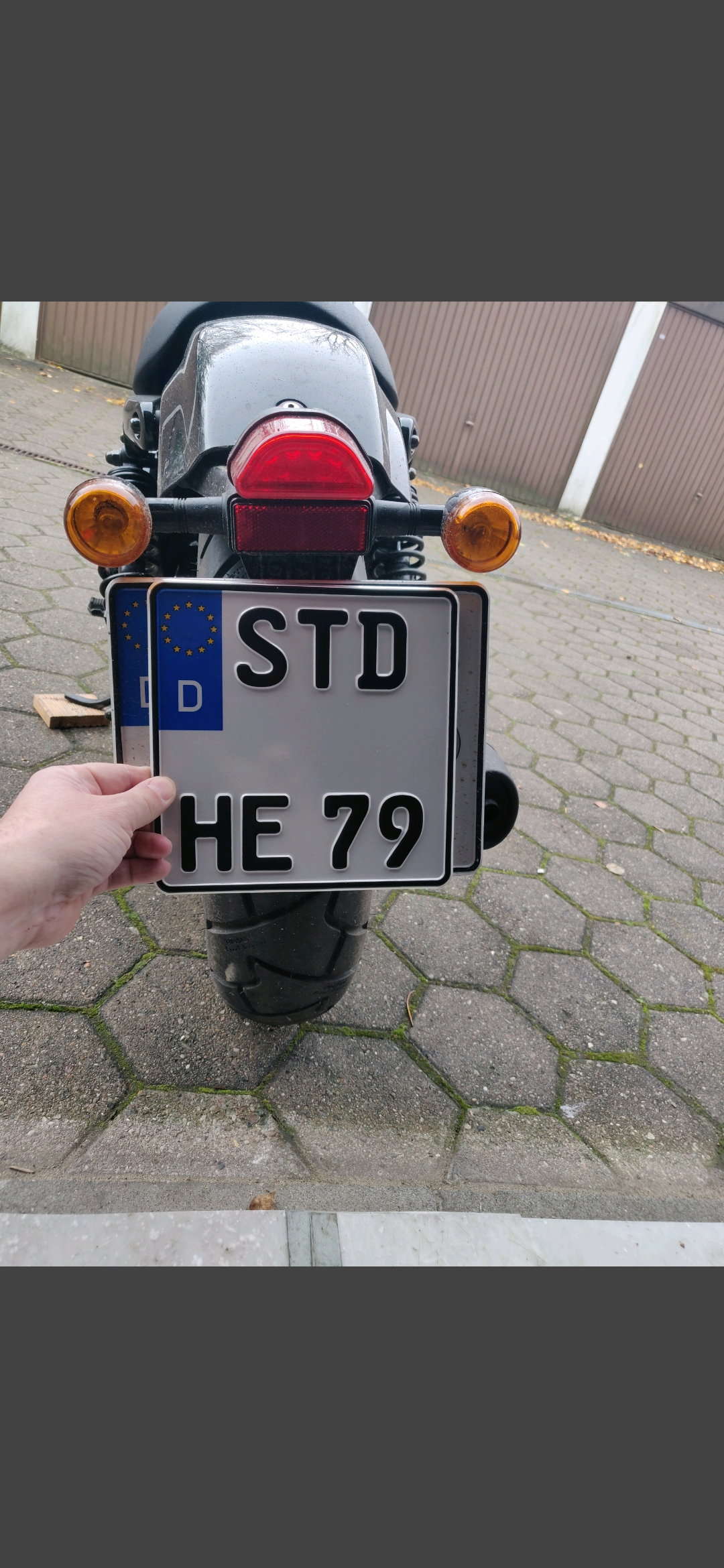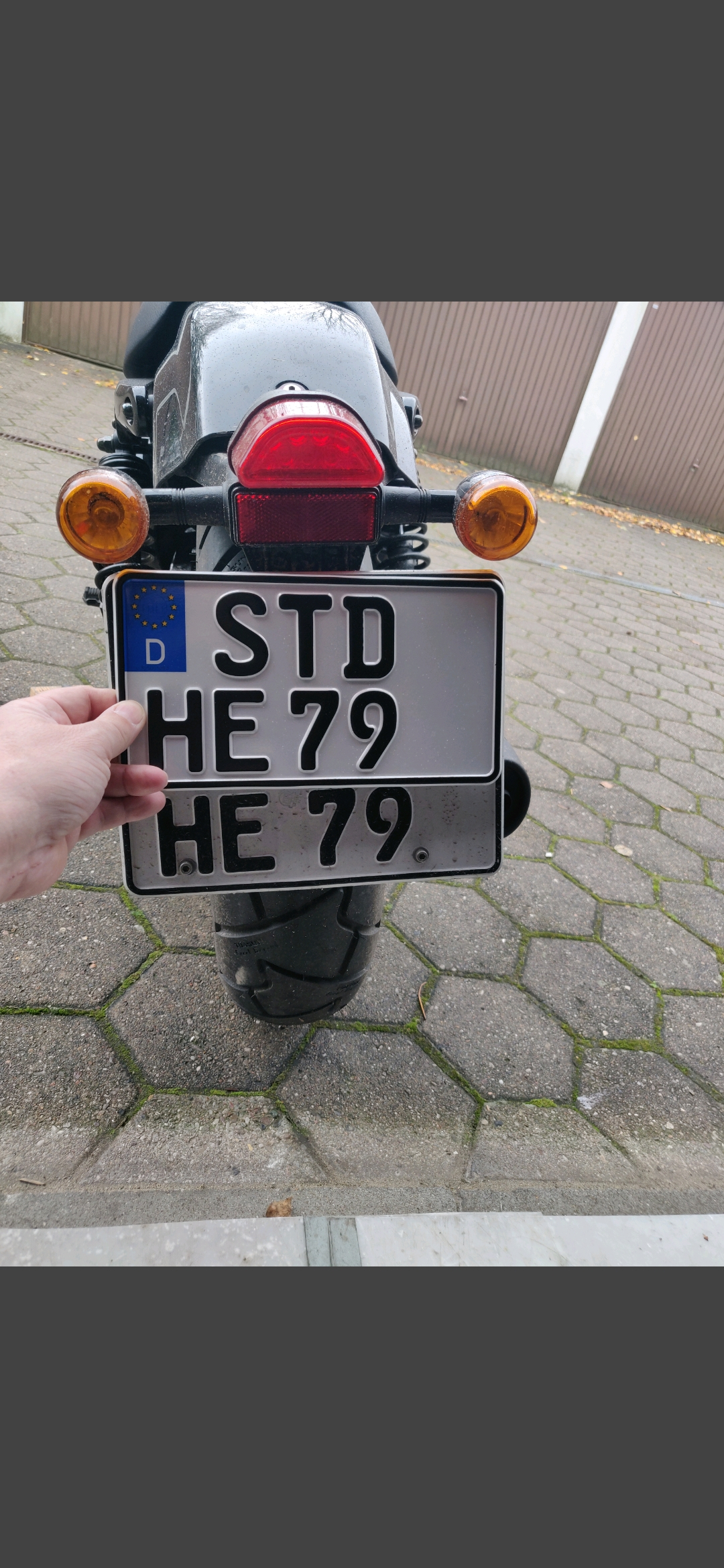 Wenn die Schildergröße nicht passt einfach erstmal fahren und in ein paar Wochen für 5 € umtauschen. Das Motorrad hat während C der Service für mich zugelassen, da wurde ich ja nur ausgelacht, eine freundliche Mail mit Bild und ich könnt das kleine Schild dran machen, 5 € kosteten die 2 Plaketten.