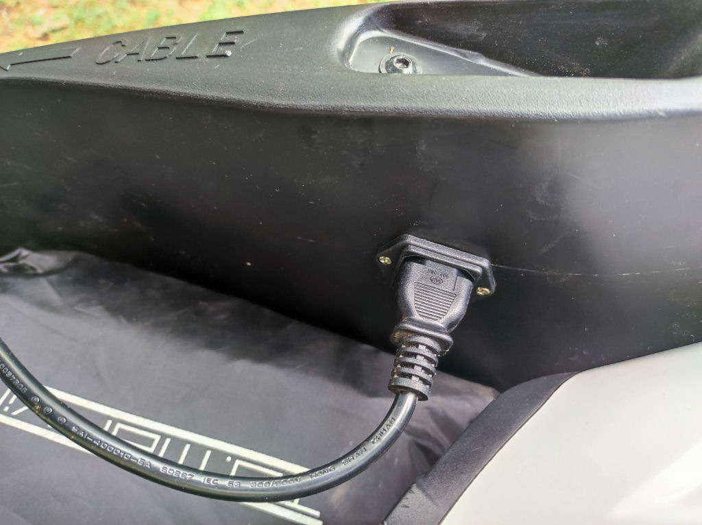 Endlich habe ich den Ladestecker geschützt im Sattel und muss nicht mehr bei jedem Aufladen die Gummiklappe an der Seite des Scooters öffnen.