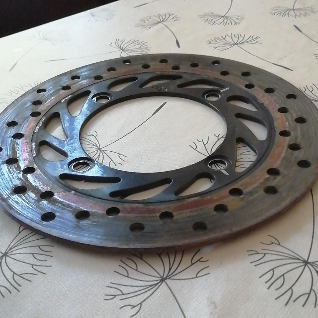 Eins steht fest, Dein Freund ist ein Spezialist, egal ob E-Bike, Roller, Benziner Auto, mit so einer Bremsscheibe unterwegs zu sein ist für mich absolutes NoGo