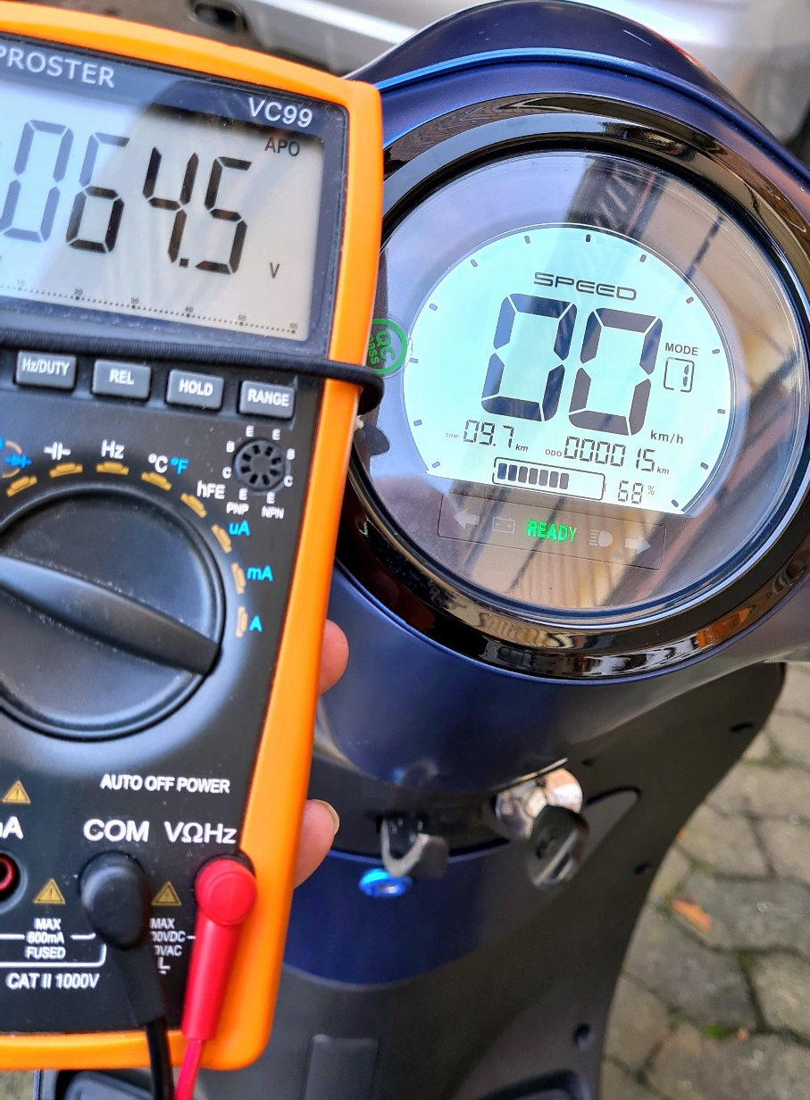 Wenn der Akku tatsächlich ein 20s (Mittel-/Nennspannung 72 Volt wäre, dürfte der nur im Bereich 84V bis 60 V arbeiten und würde in einem 60 Volt-Roller ggf. geschädigt.