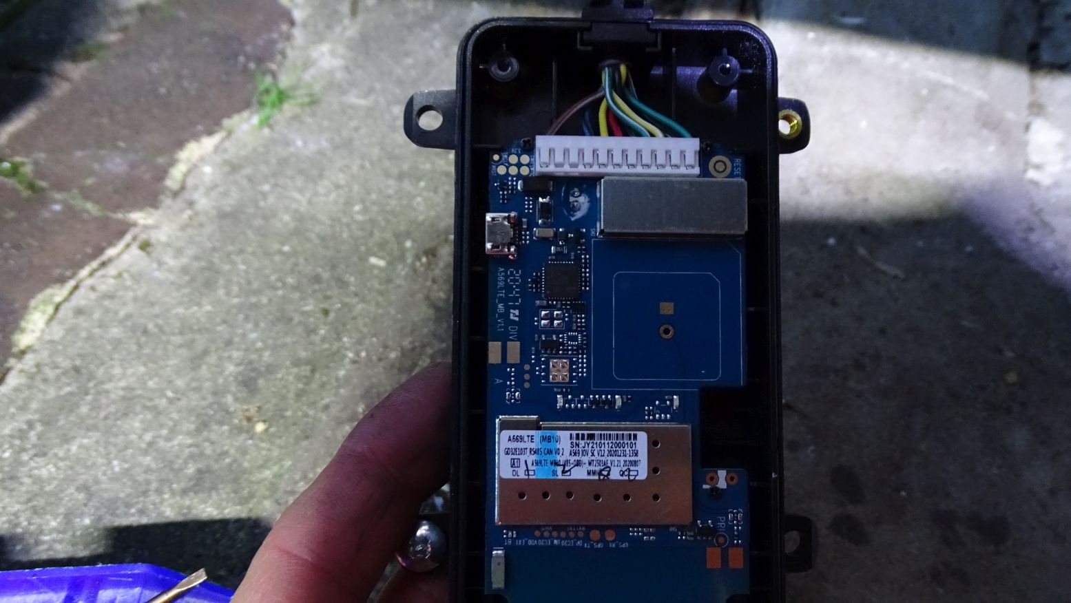 In dem Kommunikations-Modul ist das „Telefon“ nochmals in einem separaten Gehäuse versteckt, auf dem war auch ein Aufkleber mit der IMEI-Nummer.