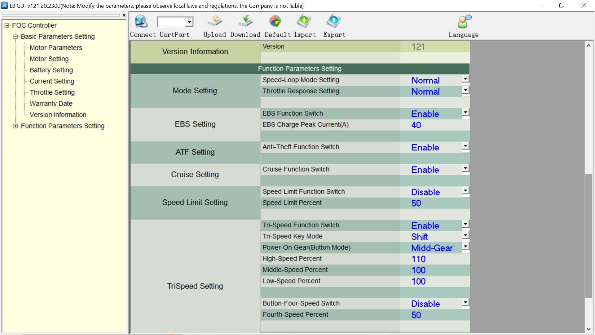 Attached my setting for the lingbo 72122 HK3A. Main differences are the max rpm (3000) and the high speed percent (110 %). Do you think it would be possible to somehow build in a serarate GPS speedometer with R485 communication and connect it to the display or to the VCU?