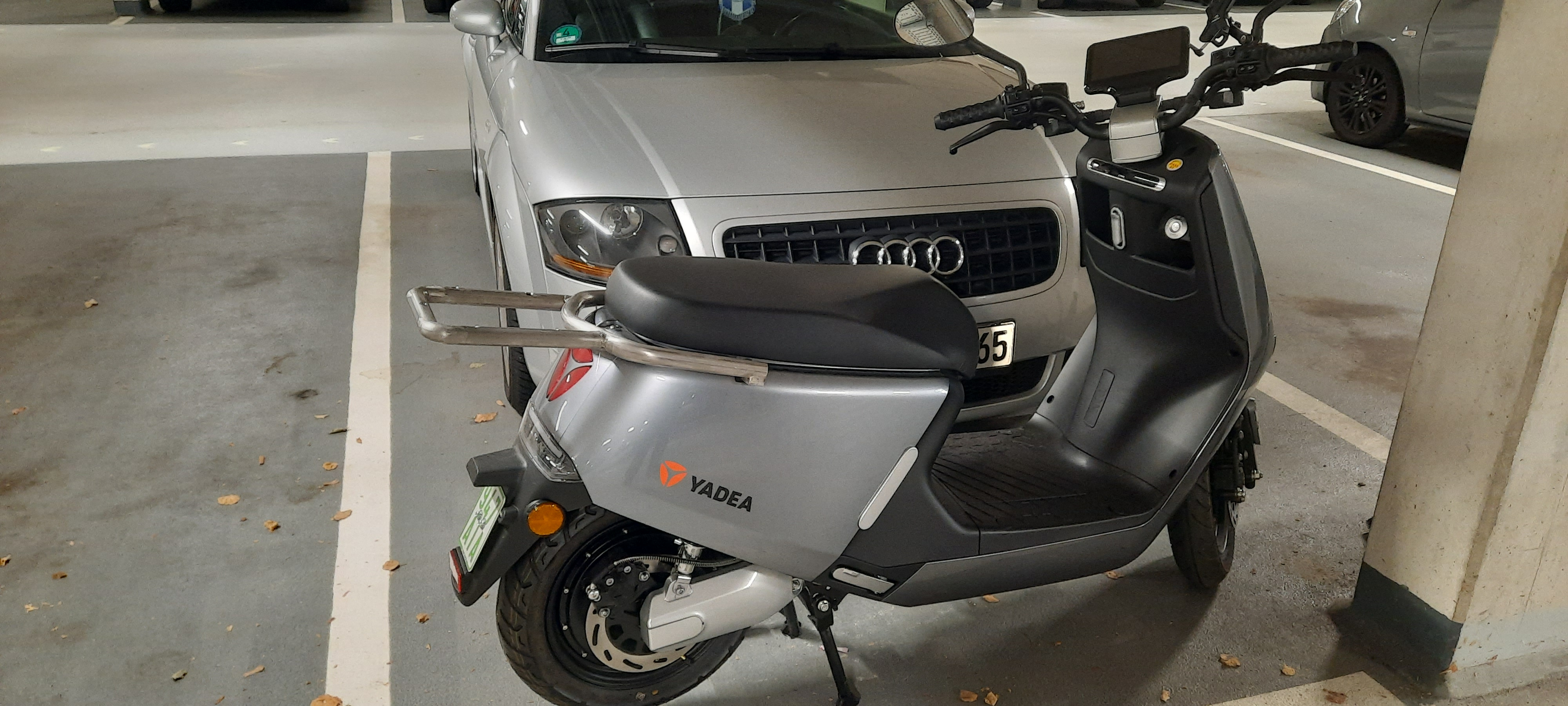 Jo, eben ein Yadea G5 45er-RollerAnsonsten fährt er sich echt knackig und trotz hat trotz der angegebenen 2,3kw spuerbar mehr Wumms als mein offener CUX und trotz des höheren Gewichtes.