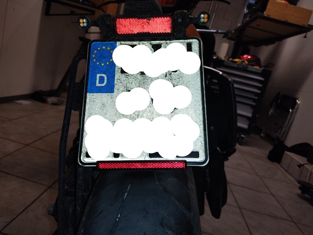 Das wird nix, zumindest nicht mit deutschem Motorradschild. Wenn es einfedert dann bämm...Das 125er Format geht, fällt bei mir aber aus.