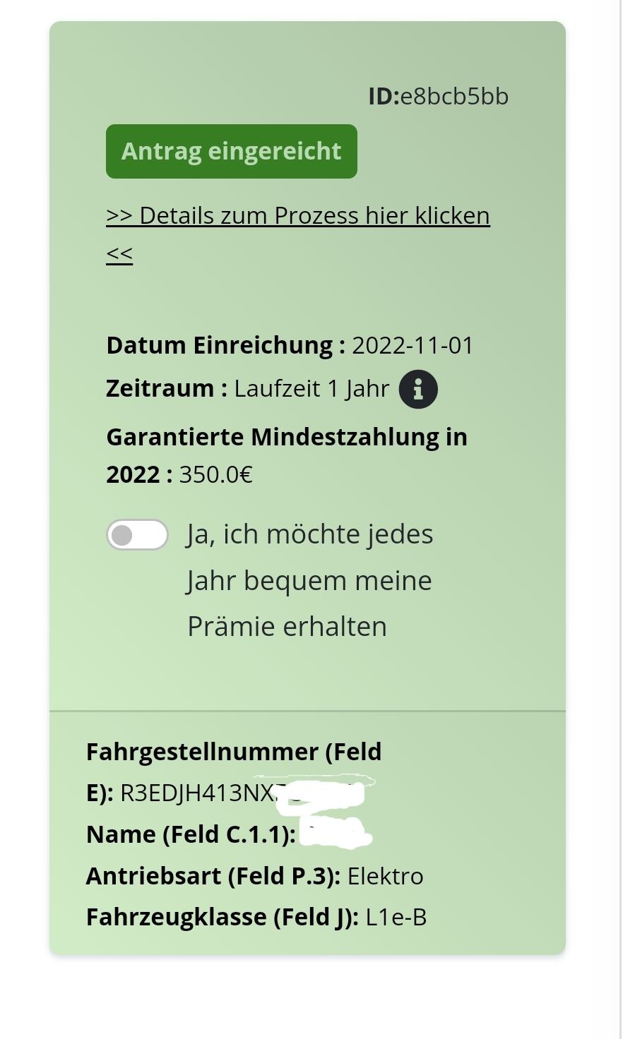 Kannst du die ganze E-Mail mal posten?MEroller hat geschrieben: ↑Fr 25. Nov 2022, 18:35Nachdem ich von geld-fuer-eauto für 2022 nur 2x 270€ Garantiepreis erhalten habe, kommt soeben eine Email, dass sie kommendes Jahr auf die Anfangs angegebenen 250€ Minimum für kommendes Jahr reduzieren werden, weil der Strom dreckiger geworden sei.