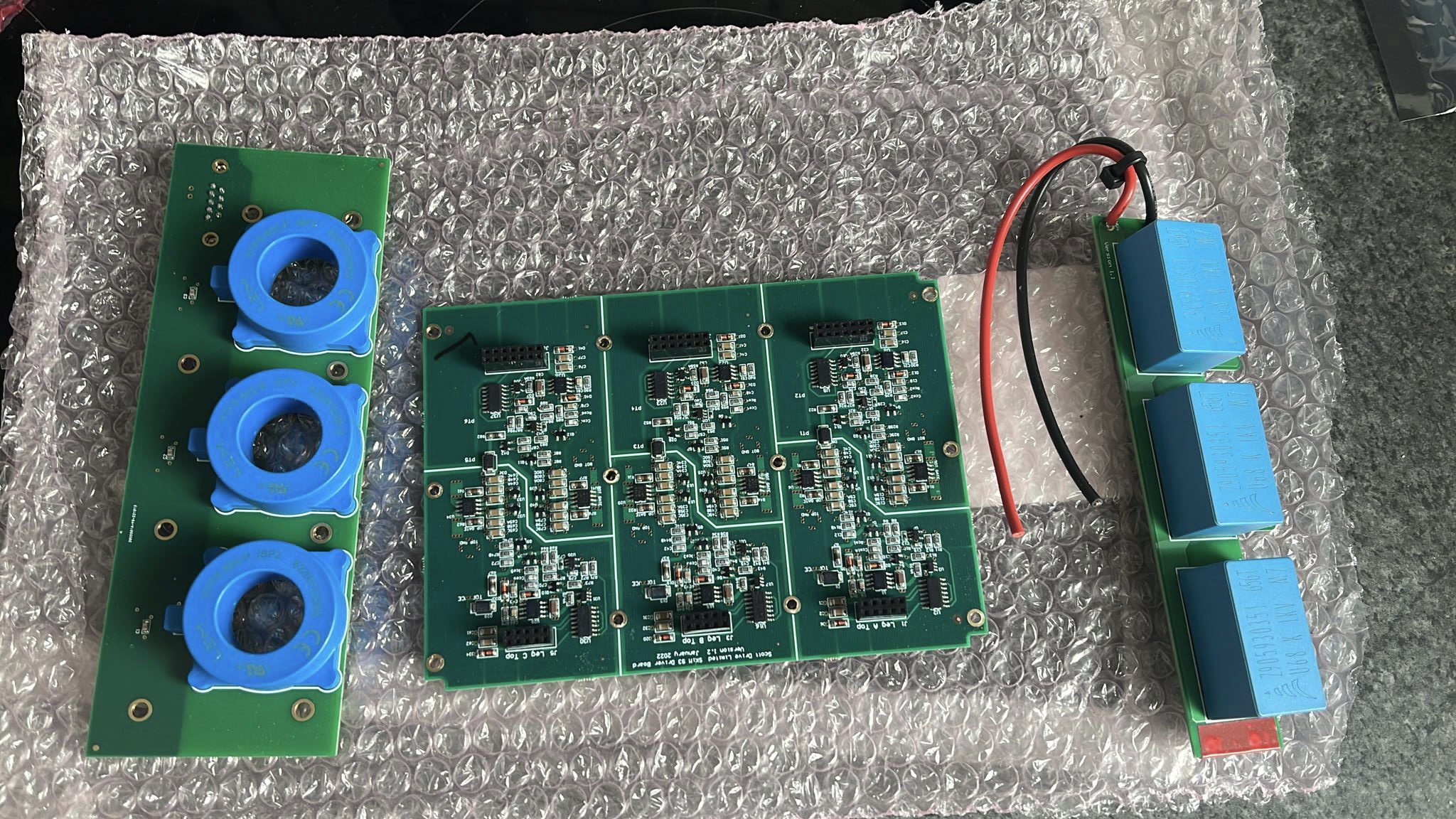 Hmmm.... Links sind drei Hall-Stromsensoren, rechts drei Relais, doch was Treiben die 6 identischen Scott Driverboards? Was wird das, wenn es fertig ist? Hattest Du die Treiber für die 6 MOSFETS/IGBTs vom Controller zerschossen?