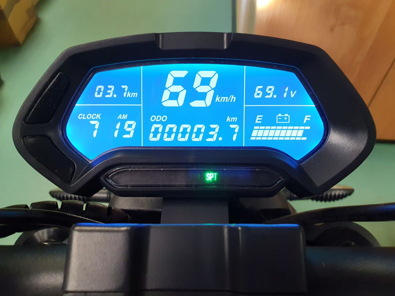 The CT-22 speedometer is fully operational (speed, odometer, clock, battery voltage, battery state of charge, turn signals, high beam). Now I need to remove the original dashboard and figure out how to mount the CT-22.
