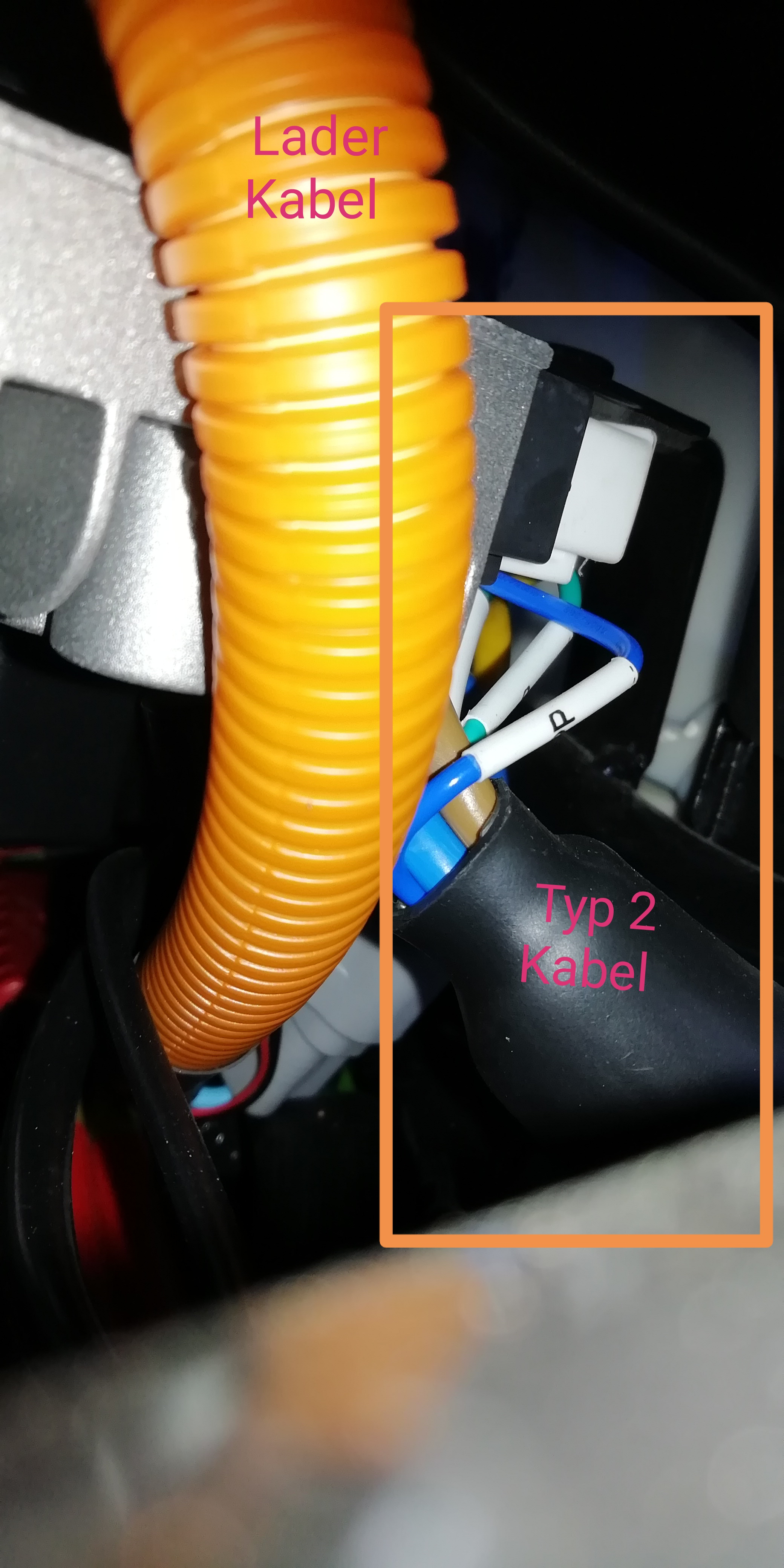 Das Orange Kabel vom Lader geht auf der anderen Seite runter, sah aus als geht es auf einen Stecker und von dort dann zum Typ 2 und vielleicht auch noch wo anders hin, konnte man aber von dort nicht besser erkennen.