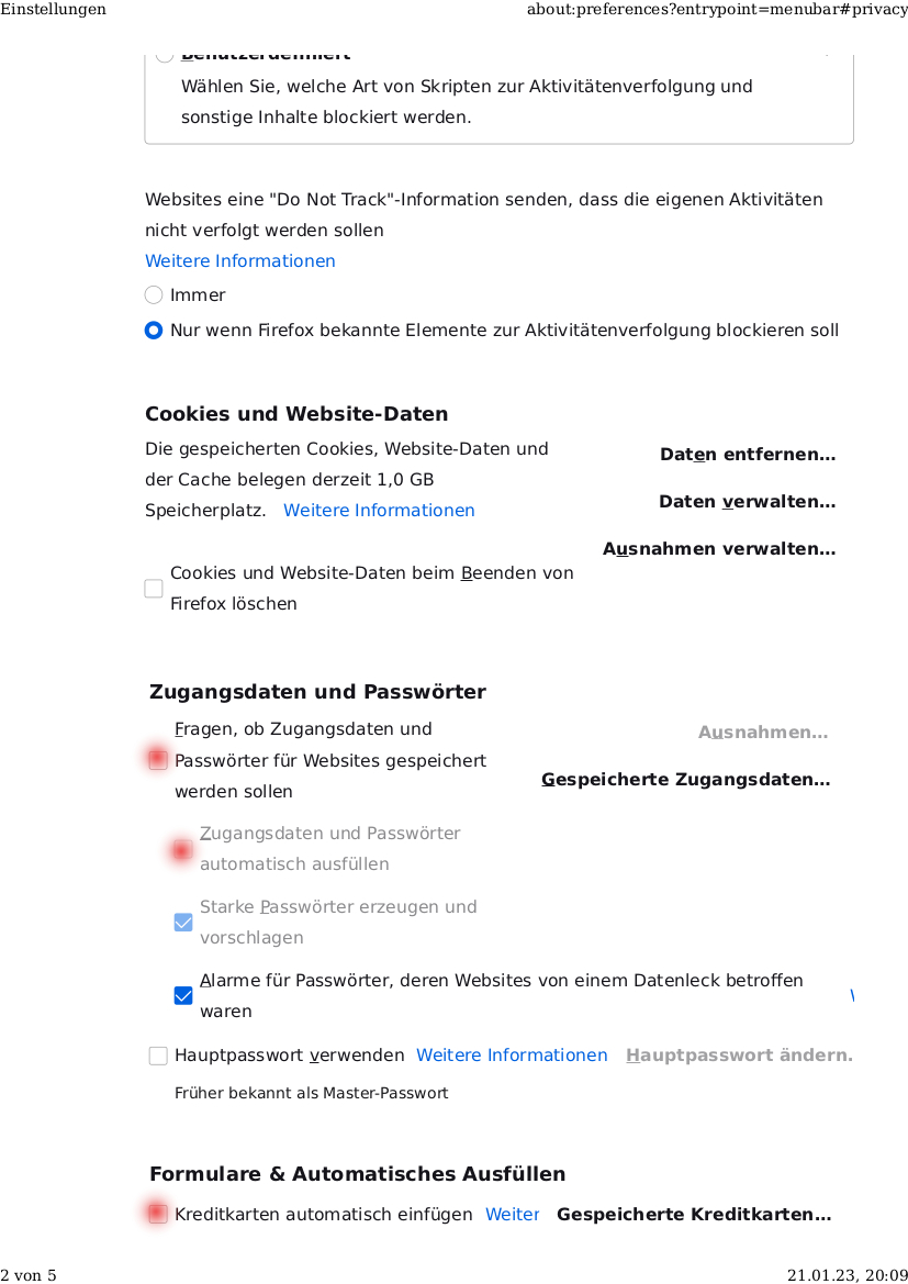 nach Silvester: Passworteinstellungen unsicher, Passworteingaben werden vom Manager gespeichert+sichtbar gemacht+automatisch eingetragen