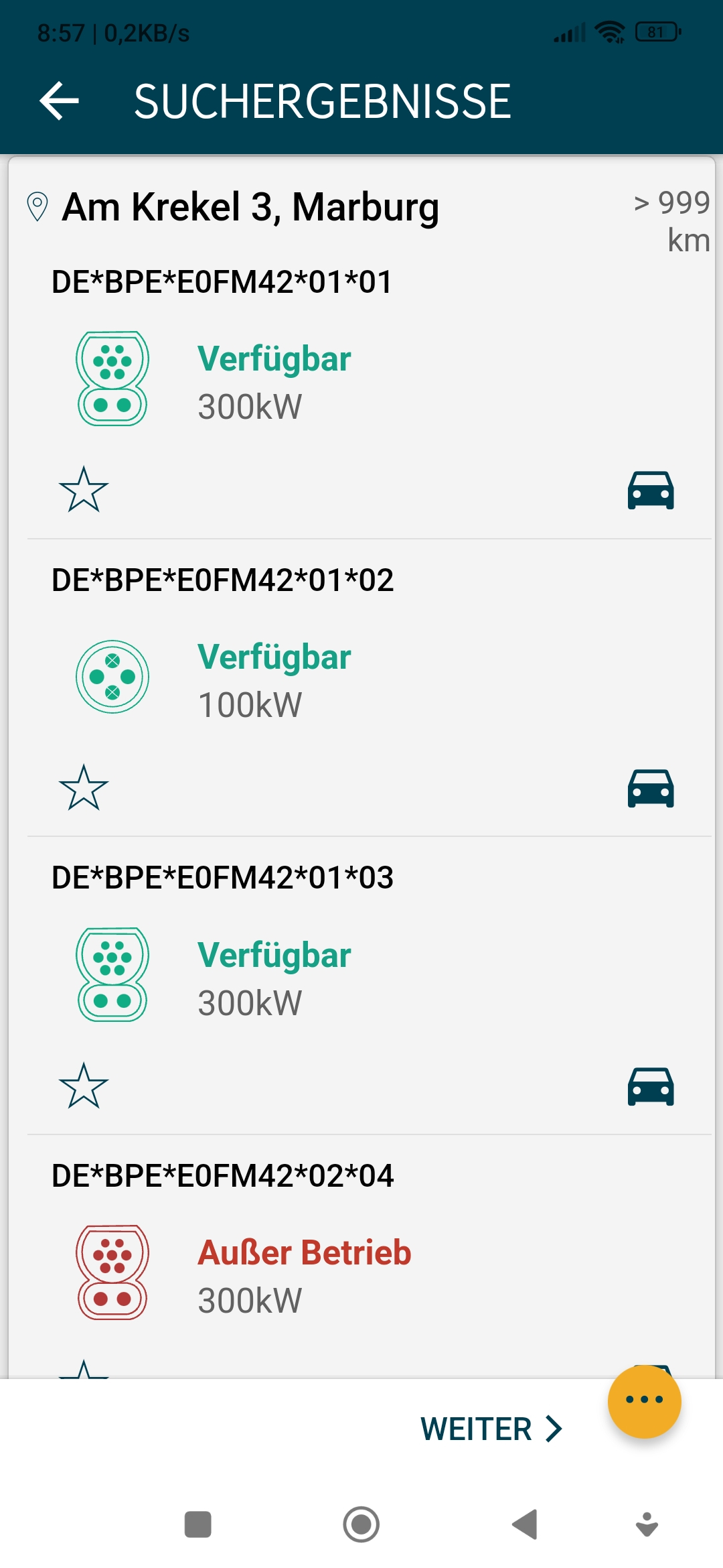 Wir haben hier in Wetzlar im Einkaufszentrum auf Parkdeck 1 insgesamt vier Ladesäulen für kostenlosen Strom,