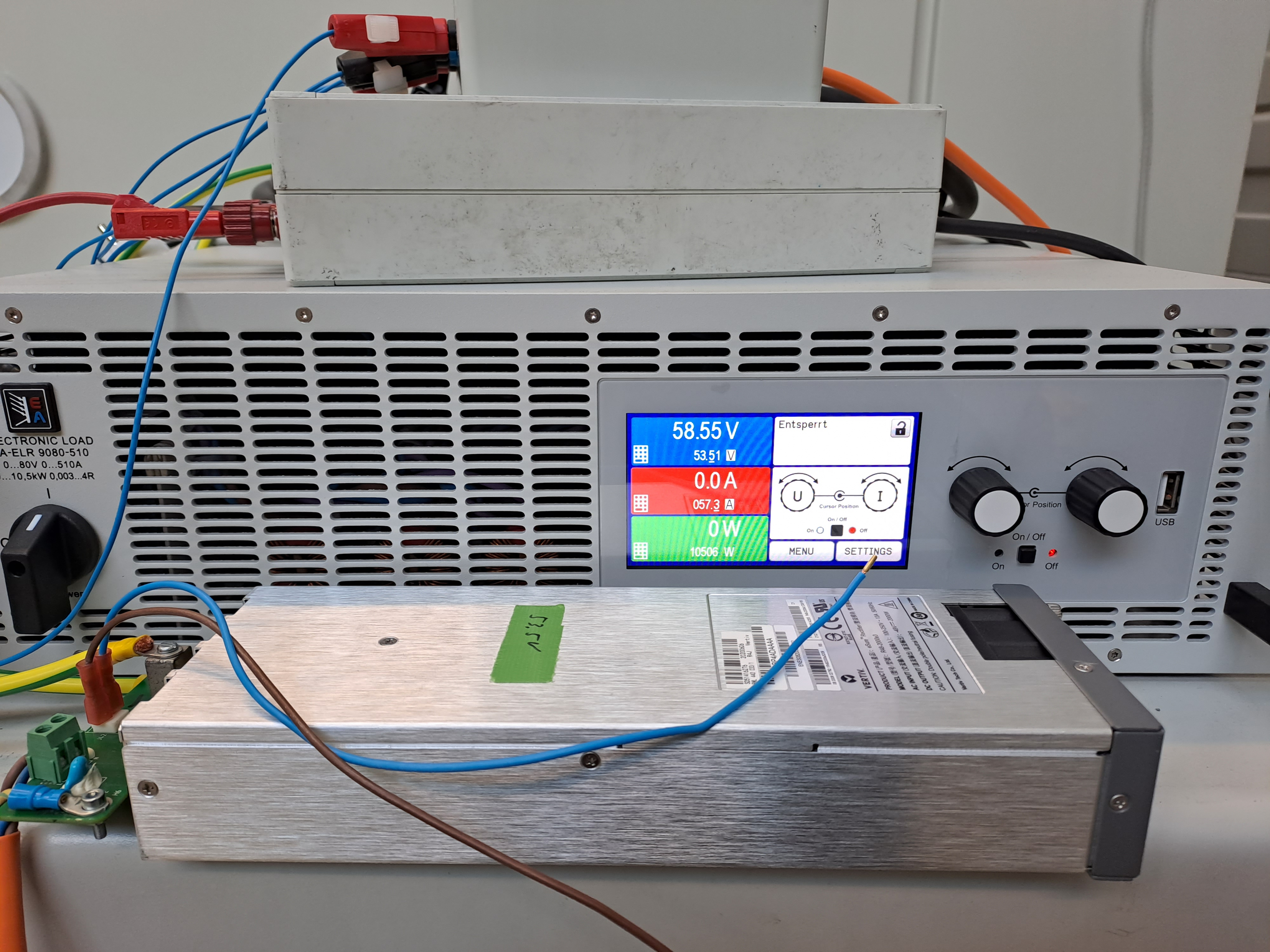 Zwei in Reihe geschaltene Vertiv R48-2000E3 würden für Bastler auch als Lader taugen, die Ladeschlußspannung lässt sich auf 42V über CAN-BUS einstellen.