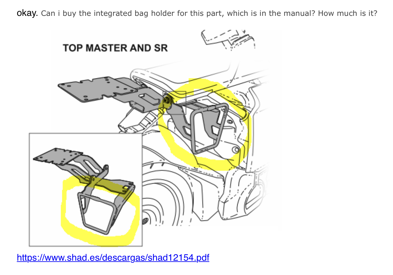 Ich hatte bei Shad zur zusätzlichen Taschenhalterung im Manual nachgefragt: